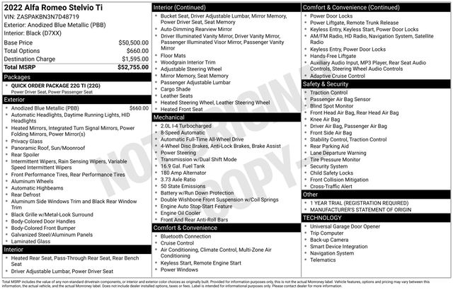 In a world of ordinary SUVs, the Stelvio Ti stands out as a true masterpiece of automotive design and engineering. Invest in the exceptional, and let the 2022 Alfa Romeo Stelvio Ti be your gateway to a driving experience like no other.