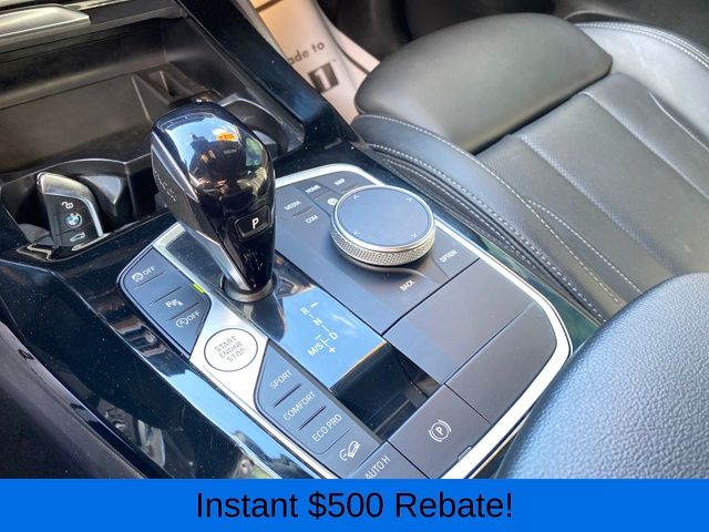 12 Speakers, 3.385 Axle Ratio, 4-Wheel Disc Brakes, ABS brakes, Air Conditioning, Alloy wheels, AM/FM Radio, AM/FM radio: SiriusXM with 360L, Apple CarPlay & Android Auto Compatibility, Auto High-beam Headlights, Auto-dimming door mirrors, Auto-dimming Rear-View mirror, Automatic temperature control, BMW Assist eCall, BMW TeleServices, Brake assist, Bumpers: body-color, Connected Package Pro, ConnectedDrive Services, Delay-off headlights, Driver door bin, Driver vanity mirror, Dual front impact airbags, Dual front side impact airbags, Electronic Stability Control, Emergency communication system: BMW Assist eCall, Enhanced Bluetooth, Exterior Parking Camera Rear, Four wheel independent suspension, Front anti-roll bar, Front Bucket Seats, Front Center Armrest, Front dual zone A/C, Front reading lights, Fully automatic headlights, Garage door transmitter, Genuine wood dashboard insert, Genuine wood door panel insert, Heated door mirrors, Hi-Fi Sound System, Illuminated entry, Knee airbag, Low tire pressure warning, Memory seat, Navigation, Navigation System, Occupant sensing airbag, Outside temperature display, Overhead airbag, Panic alarm, Passenger door bin, Passenger vanity mirror, Perforated SensaTec Upholstery, Power door mirrors, Power driver seat, Power Front Seats, Power Liftgate, Power passenger seat, Power steering, Power windows, Radio data system, Rain sensing wipers, Rear air conditioning, Rear anti-roll bar, Rear reading lights, Rear seat center armrest, Rear window defroster, Rear window wiper, Remote keyless entry, Roof rack: rails only, Security system, SiriusXM w/360L, Speed control, Speed-sensing steering, Speed-Sensitive Wipers, Split folding rear seat, Spoiler, Sport Seats, Sport steering wheel, Steering wheel mounted audio controls, Tachometer, Telescoping steering wheel, Tilt steering wheel, Traction control, Trip computer, Turn signal indicator mirrors, Variably intermittent wipers, Wheels: 19" x 7.5" Y-Spoke (Style 693), WiFi Hotspot.