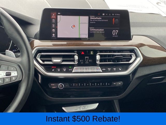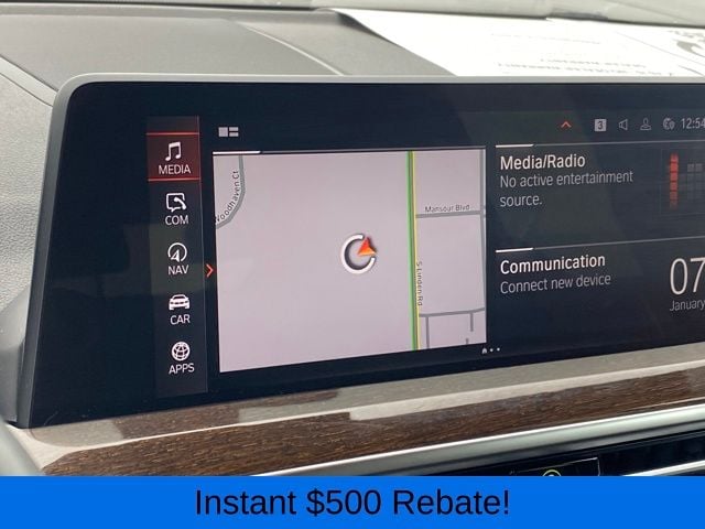Navigation System, 12 Speakers, 3.385 Axle Ratio, 4-Wheel Disc Brakes, ABS brakes, Air Conditioning, Alloy wheels, AM/FM Radio, AM/FM radio: SiriusXM with 360L, Apple CarPlay & Android Auto Compatibility, Auto High-beam Headlights, Auto-dimming door mirrors, Auto-dimming Rear-View mirror, Automatic temperature control, BMW Assist eCall, BMW TeleServices, Brake assist, Bumpers: body-color, Connected Package Pro, ConnectedDrive Services, Delay-off headlights, Driver door bin, Driver vanity mirror, Dual front impact airbags, Dual front side impact airbags, Electronic Stability Control, Emergency communication system: BMW Assist eCall, Enhanced Bluetooth, Exterior Parking Camera Rear, Four wheel independent suspension, Front anti-roll bar, Front Bucket Seats, Front Center Armrest, Front dual zone A/C, Front reading lights, Fully automatic headlights, Garage door transmitter, Genuine wood dashboard insert, Genuine wood door panel insert, Heated door mirrors, Hi-Fi Sound System, Illuminated entry, Knee airbag, Low tire pressure warning, Memory seat, Navigation, Occupant sensing airbag, Outside temperature display, Overhead airbag, Panic alarm, Passenger door bin, Passenger vanity mirror, Perforated SensaTec Upholstery, Power door mirrors, Power driver seat, Power Front Seats, Power Liftgate, Power passenger seat, Power steering, Power windows, Radio data system, Rain sensing wipers, Rear air conditioning, Rear anti-roll bar, Rear reading lights, Rear seat center armrest, Rear window defroster, Rear window wiper, Remote keyless entry, Roof rack: rails only, Security system, SiriusXM w/360L, Speed control, Speed-sensing steering, Speed-Sensitive Wipers, Split folding rear seat, Spoiler, Sport Seats, Sport steering wheel, Steering wheel mounted audio controls, Tachometer, Telescoping steering wheel, Tilt steering wheel, Traction control, Trip computer, Turn signal indicator mirrors, Variably intermittent wipers, Wheels: 19" x 7.5" Y-Spoke (Style 693), WiFi Hotspot, Navigation System.