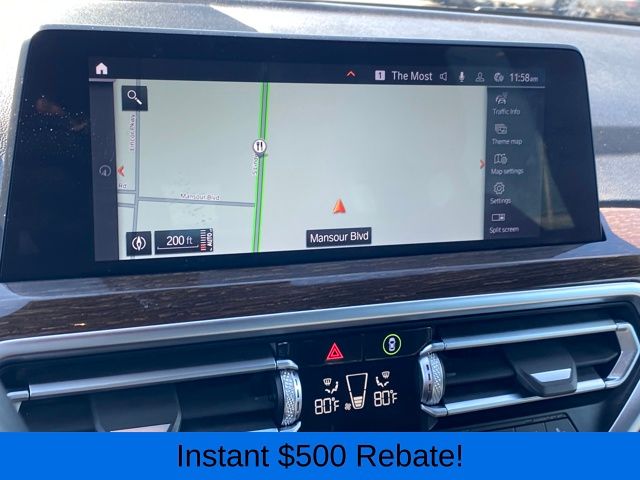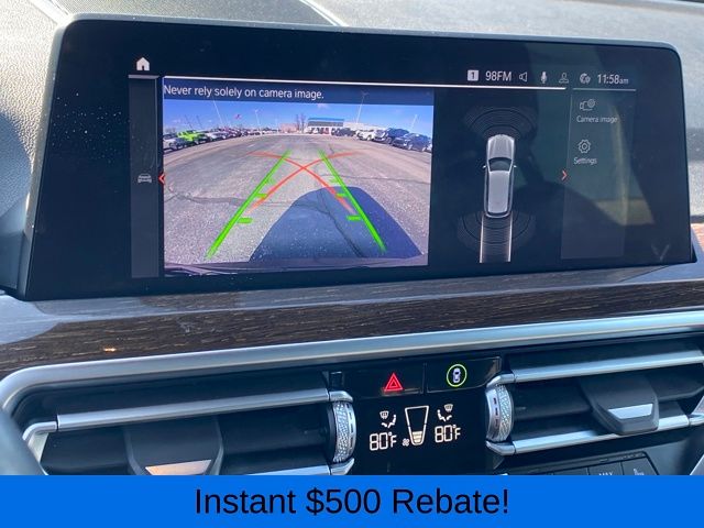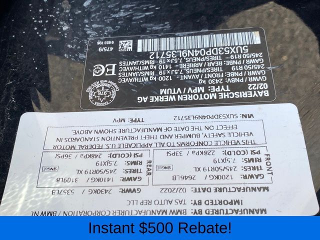 12 Speakers, 3.385 Axle Ratio, 4-Wheel Disc Brakes, ABS brakes, Air Conditioning, Alloy wheels, AM/FM Radio, AM/FM radio: SiriusXM with 360L, Apple CarPlay & Android Auto Compatibility, Auto High-beam Headlights, Auto-dimming door mirrors, Auto-dimming Rear-View mirror, Automatic temperature control, BMW Assist eCall, BMW TeleServices, Brake assist, Bumpers: body-color, Connected Package Pro, ConnectedDrive Services, Delay-off headlights, Driver door bin, Driver vanity mirror, Dual front impact airbags, Dual front side impact airbags, Electronic Stability Control, Emergency communication system: BMW Assist eCall, Enhanced Bluetooth, Exterior Parking Camera Rear, Four wheel independent suspension, Front anti-roll bar, Front Bucket Seats, Front Center Armrest, Front dual zone A/C, Front reading lights, Fully automatic headlights, Garage door transmitter, Genuine wood dashboard insert, Genuine wood door panel insert, Heated door mirrors, Hi-Fi Sound System, Illuminated entry, Knee airbag, Low tire pressure warning, Memory seat, Navigation, Navigation System, Occupant sensing airbag, Outside temperature display, Overhead airbag, Panic alarm, Passenger door bin, Passenger vanity mirror, Perforated SensaTec Upholstery, Power door mirrors, Power driver seat, Power Front Seats, Power Liftgate, Power passenger seat, Power steering, Power windows, Radio data system, Rain sensing wipers, Rear air conditioning, Rear anti-roll bar, Rear reading lights, Rear seat center armrest, Rear window defroster, Rear window wiper, Remote keyless entry, Roof rack: rails only, Security system, SiriusXM w/360L, Speed control, Speed-sensing steering, Speed-Sensitive Wipers, Split folding rear seat, Spoiler, Sport Seats, Sport steering wheel, Steering wheel mounted audio controls, Tachometer, Telescoping steering wheel, Tilt steering wheel, Traction control, Trip computer, Turn signal indicator mirrors, Variably intermittent wipers, Wheels: 19" x 7.5" Y-Spoke (Style 693), WiFi Hotspot.