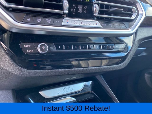 Navigation System, 12 Speakers, 3.385 Axle Ratio, 4-Wheel Disc Brakes, ABS brakes, Air Conditioning, Alloy wheels, AM/FM Radio, AM/FM radio: SiriusXM, Apple CarPlay & Android Auto Compatibility, Auto High-beam Headlights, Auto-dimming door mirrors, Auto-dimming Rear-View mirror, Automatic temperature control, BMW Assist eCall, BMW TeleServices, Brake assist, Bumpers: body-color, Connected Package Pro, ConnectedDrive Services, Delay-off headlights, Driver door bin, Driver vanity mirror, Dual front impact airbags, Dual front side impact airbags, Electronic Stability Control, Emergency communication system: BMW Assist eCall, Enhanced USB & Bluetooth w/Smartphone Integration, Exterior Parking Camera Rear, Four wheel independent suspension, Front anti-roll bar, Front Bucket Seats, Front Center Armrest, Front dual zone A/C, Front reading lights, Fully automatic headlights, Garage door transmitter, Genuine wood dashboard insert, Genuine wood door panel insert, Heated door mirrors, Hi-Fi Sound System, Illuminated entry, Knee airbag, Low tire pressure warning, Memory seat, Navigation, Occupant sensing airbag, Outside temperature display, Overhead airbag, Panic alarm, Passenger door bin, Passenger vanity mirror, Perforated SensaTec Upholstery, Power door mirrors, Power driver seat, Power Front Seats, Power Liftgate, Power passenger seat, Power steering, Power windows, Radio data system, Rain sensing wipers, Rear air conditioning, Rear anti-roll bar, Rear reading lights, Rear seat center armrest, Rear window defroster, Rear window wiper, Remote keyless entry, Security system, SiriusXM Satellite Radio, Speed control, Speed-sensing steering, Speed-Sensitive Wipers, Split folding rear seat, Spoiler, Sport Seats, Sport steering wheel, Steering wheel mounted audio controls, Tachometer, Telescoping steering wheel, Tilt steering wheel, Traction control, Trip computer, Turn signal indicator mirrors, Variably intermittent wipers, Wheels: 19" x 7.5" Y-Spoke (Style 693), WiFi Hotspot, Navigation System.