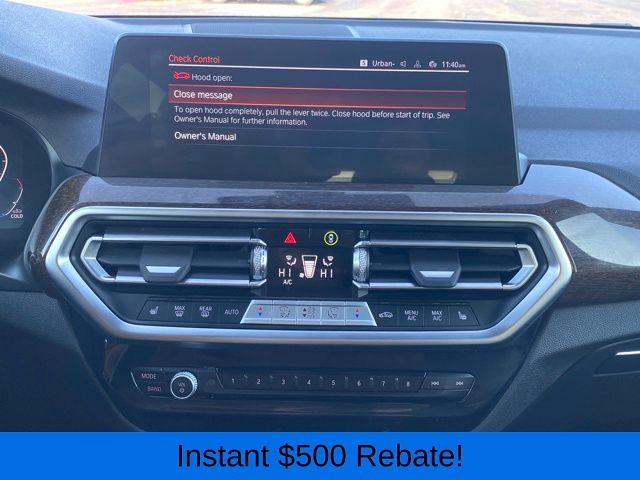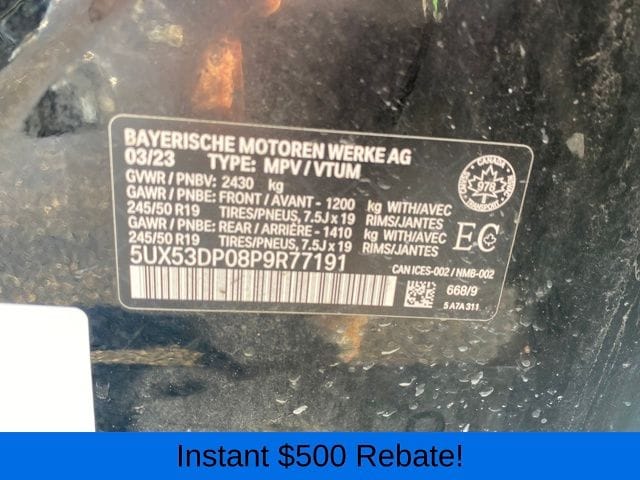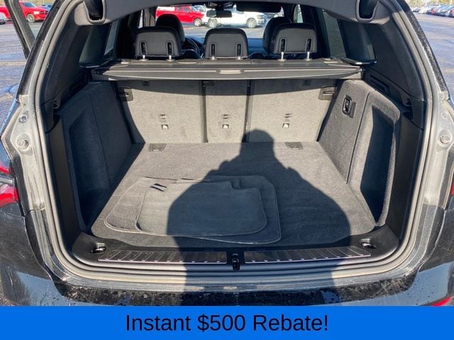 12 Speakers, 3.385 Axle Ratio, 4-Wheel Disc Brakes, ABS brakes, Air Conditioning, Alloy wheels, AM/FM Radio, AM/FM radio: SiriusXM, Apple CarPlay & Android Auto Compatibility, Auto High-beam Headlights, Auto-dimming door mirrors, Auto-dimming Rear-View mirror, Automatic temperature control, BMW Assist eCall, BMW TeleServices, Brake assist, Bumpers: body-color, Connected Package Pro, ConnectedDrive Services, Delay-off headlights, Driver door bin, Driver vanity mirror, Dual front impact airbags, Dual front side impact airbags, Electronic Stability Control, Emergency communication system: BMW Assist eCall, Enhanced USB & Bluetooth w/Smartphone Integration, Exterior Parking Camera Rear, Four wheel independent suspension, Front anti-roll bar, Front Bucket Seats, Front Center Armrest, Front dual zone A/C, Front reading lights, Fully automatic headlights, Garage door transmitter, Genuine wood dashboard insert, Genuine wood door panel insert, Heated door mirrors, Hi-Fi Sound System, Illuminated entry, Knee airbag, Low tire pressure warning, Memory seat, Navigation, Navigation System, Occupant sensing airbag, Outside temperature display, Overhead airbag, Panic alarm, Passenger door bin, Passenger vanity mirror, Perforated SensaTec Upholstery, Power door mirrors, Power driver seat, Power Front Seats, Power Liftgate, Power passenger seat, Power steering, Power windows, Radio data system, Rain sensing wipers, Rear air conditioning, Rear anti-roll bar, Rear reading lights, Rear seat center armrest, Rear window defroster, Rear window wiper, Remote keyless entry, Security system, SiriusXM Satellite Radio, Speed control, Speed-sensing steering, Speed-Sensitive Wipers, Split folding rear seat, Spoiler, Sport Seats, Sport steering wheel, Steering wheel mounted audio controls, Tachometer, Telescoping steering wheel, Tilt steering wheel, Traction control, Trip computer, Turn signal indicator mirrors, Variably intermittent wipers, Wheels: 19" x 7.5" Y-Spoke (Style 693), WiFi Hotspot.