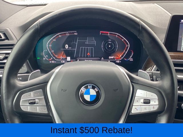 12 Speakers, 3.385 Axle Ratio, 4-Wheel Disc Brakes, ABS brakes, Air Conditioning, Alloy wheels, AM/FM Radio, AM/FM radio: SiriusXM, Apple CarPlay & Android Auto Compatibility, Auto High-beam Headlights, Auto-dimming door mirrors, Auto-dimming Rear-View mirror, Automatic temperature control, BMW Assist eCall, BMW TeleServices, Brake assist, Bumpers: body-color, Connected Package Pro, ConnectedDrive Services, Delay-off headlights, Driver door bin, Driver vanity mirror, Dual front impact airbags, Dual front side impact airbags, Electronic Stability Control, Emergency communication system: BMW Assist eCall, Enhanced USB & Bluetooth w/Smartphone Integration, Exterior Parking Camera Rear, Four wheel independent suspension, Front anti-roll bar, Front Bucket Seats, Front Center Armrest, Front dual zone A/C, Front reading lights, Fully automatic headlights, Garage door transmitter, Genuine wood dashboard insert, Genuine wood door panel insert, Heated door mirrors, Hi-Fi Sound System, Illuminated entry, Knee airbag, Low tire pressure warning, Memory seat, Navigation, Navigation System, Occupant sensing airbag, Outside temperature display, Overhead airbag, Panic alarm, Passenger door bin, Passenger vanity mirror, Perforated SensaTec Upholstery, Power door mirrors, Power driver seat, Power Front Seats, Power Liftgate, Power passenger seat, Power steering, Power windows, Radio data system, Rain sensing wipers, Rear air conditioning, Rear anti-roll bar, Rear reading lights, Rear seat center armrest, Rear window defroster, Rear window wiper, Remote keyless entry, Security system, SiriusXM Satellite Radio, Speed control, Speed-sensing steering, Speed-Sensitive Wipers, Split folding rear seat, Spoiler, Sport Seats, Sport steering wheel, Steering wheel mounted audio controls, Tachometer, Telescoping steering wheel, Tilt steering wheel, Traction control, Trip computer, Turn signal indicator mirrors, Variably intermittent wipers, Wheels: 19" x 7.5" Y-Spoke (Style 693), WiFi Hotspot.