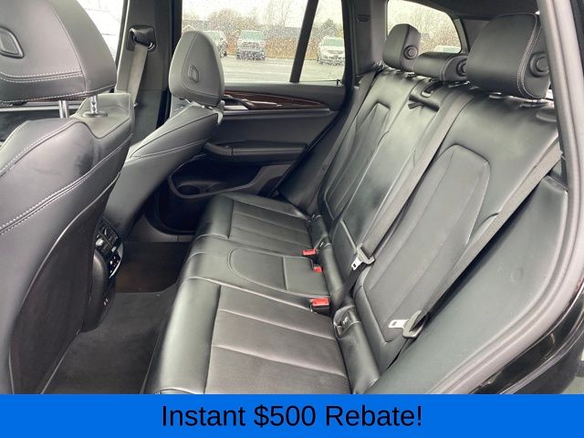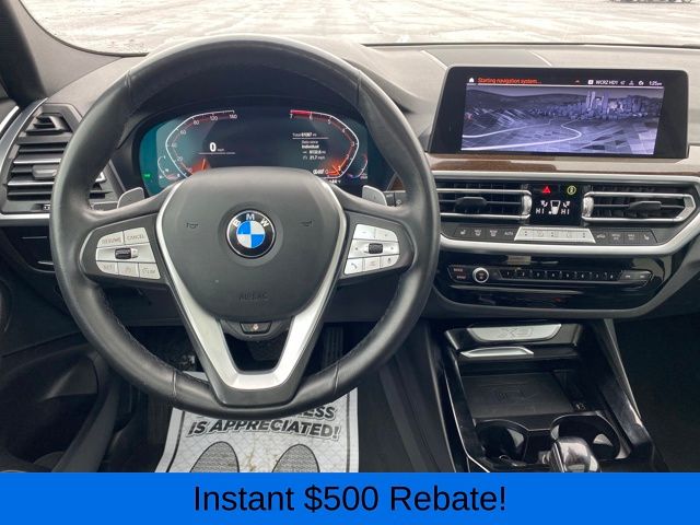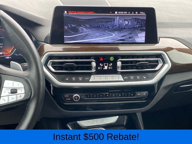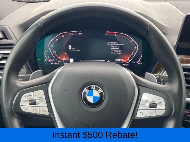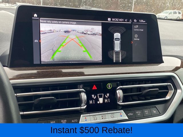 Navigation System, 12 Speakers, 3.385 Axle Ratio, 4-Wheel Disc Brakes, ABS brakes, Air Conditioning, Alloy wheels, AM/FM Radio, AM/FM radio: SiriusXM, Apple CarPlay & Android Auto Compatibility, Auto High-beam Headlights, Auto-dimming door mirrors, Auto-dimming Rear-View mirror, Automatic temperature control, BMW Assist eCall, BMW TeleServices, Brake assist, Bumpers: body-color, Connected Package Pro, ConnectedDrive Services, Delay-off headlights, Driver door bin, Driver vanity mirror, Dual front impact airbags, Dual front side impact airbags, Electronic Stability Control, Emergency communication system: BMW Assist eCall, Enhanced USB & Bluetooth w/Smartphone Integration, Exterior Parking Camera Rear, Four wheel independent suspension, Front anti-roll bar, Front Bucket Seats, Front Center Armrest, Front dual zone A/C, Front reading lights, Fully automatic headlights, Garage door transmitter, Genuine wood dashboard insert, Genuine wood door panel insert, Heated door mirrors, Hi-Fi Sound System, Illuminated entry, Knee airbag, Low tire pressure warning, Memory seat, Navigation, Occupant sensing airbag, Outside temperature display, Overhead airbag, Panic alarm, Passenger door bin, Passenger vanity mirror, Perforated SensaTec Upholstery, Power door mirrors, Power driver seat, Power Front Seats, Power Liftgate, Power passenger seat, Power steering, Power windows, Radio data system, Rain sensing wipers, Rear air conditioning, Rear anti-roll bar, Rear reading lights, Rear seat center armrest, Rear window defroster, Rear window wiper, Remote keyless entry, Security system, SiriusXM Satellite Radio, Speed control, Speed-sensing steering, Speed-Sensitive Wipers, Split folding rear seat, Spoiler, Sport Seats, Sport steering wheel, Steering wheel mounted audio controls, Tachometer, Telescoping steering wheel, Tilt steering wheel, Traction control, Trip computer, Turn signal indicator mirrors, Variably intermittent wipers, Wheels: 19" x 7.5" Y-Spoke (Style 693), WiFi Hotspot, Navigation System.