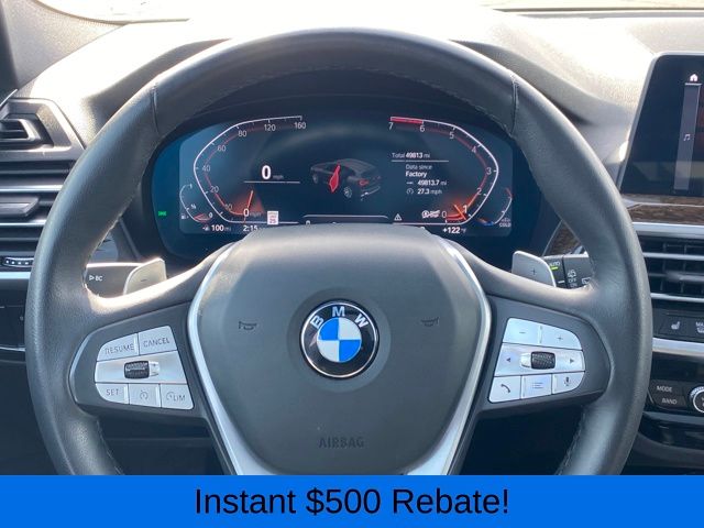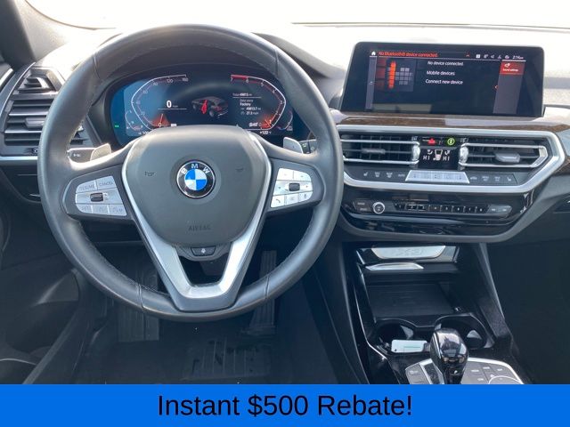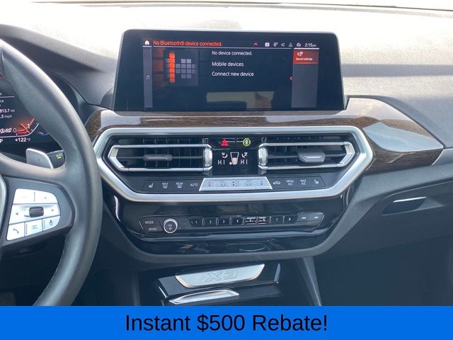 12 Speakers, 3.385 Axle Ratio, 4-Wheel Disc Brakes, ABS brakes, Air Conditioning, Alloy wheels, AM/FM Radio, AM/FM radio: SiriusXM, Apple CarPlay & Android Auto Compatibility, Auto High-beam Headlights, Auto-dimming door mirrors, Auto-dimming Rear-View mirror, Automatic temperature control, BMW Assist eCall, BMW TeleServices, Brake assist, Bumpers: body-color, Connected Package Pro, ConnectedDrive Services, Delay-off headlights, Driver door bin, Driver vanity mirror, Dual front impact airbags, Dual front side impact airbags, Electronic Stability Control, Emergency communication system: BMW Assist eCall, Enhanced USB & Bluetooth w/Smartphone Integration, Exterior Parking Camera Rear, Four wheel independent suspension, Front anti-roll bar, Front Bucket Seats, Front Center Armrest, Front dual zone A/C, Front reading lights, Fully automatic headlights, Garage door transmitter, Genuine wood dashboard insert, Genuine wood door panel insert, Heated door mirrors, Hi-Fi Sound System, Illuminated entry, Knee airbag, Low tire pressure warning, Memory seat, Navigation, Navigation System, Occupant sensing airbag, Outside temperature display, Overhead airbag, Panic alarm, Passenger door bin, Passenger vanity mirror, Perforated SensaTec Upholstery, Power door mirrors, Power driver seat, Power Front Seats, Power Liftgate, Power passenger seat, Power steering, Power windows, Radio data system, Rain sensing wipers, Rear air conditioning, Rear anti-roll bar, Rear reading lights, Rear seat center armrest, Rear window defroster, Rear window wiper, Remote keyless entry, Security system, SiriusXM Satellite Radio, Speed control, Speed-sensing steering, Speed-Sensitive Wipers, Split folding rear seat, Spoiler, Sport Seats, Sport steering wheel, Steering wheel mounted audio controls, Tachometer, Telescoping steering wheel, Tilt steering wheel, Traction control, Trip computer, Turn signal indicator mirrors, Variably intermittent wipers, Wheels: 19" x 7.5" Y-Spoke (Style 693), WiFi Hotspot.