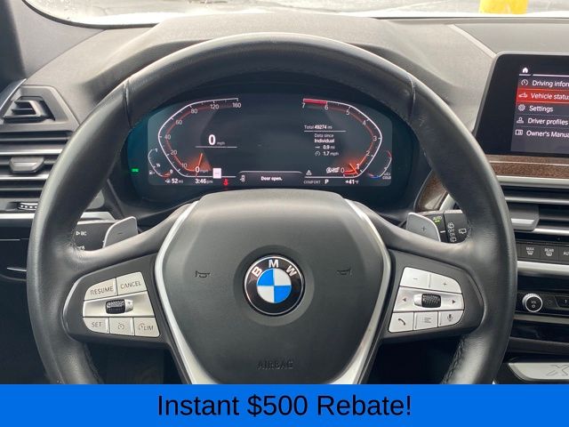 Navigation System, 12 Speakers, 3.385 Axle Ratio, 4-Wheel Disc Brakes, ABS brakes, Air Conditioning, Alloy wheels, AM/FM Radio, AM/FM radio: SiriusXM, Apple CarPlay & Android Auto Compatibility, Auto High-beam Headlights, Auto-dimming door mirrors, Auto-dimming Rear-View mirror, Automatic temperature control, BMW Assist eCall, BMW TeleServices, Brake assist, Bumpers: body-color, Connected Package Pro, ConnectedDrive Services, Delay-off headlights, Driver door bin, Driver vanity mirror, Dual front impact airbags, Dual front side impact airbags, Electronic Stability Control, Emergency communication system: BMW Assist eCall, Enhanced USB & Bluetooth w/Smartphone Integration, Exterior Parking Camera Rear, Four wheel independent suspension, Front anti-roll bar, Front Bucket Seats, Front Center Armrest, Front dual zone A/C, Front reading lights, Fully automatic headlights, Garage door transmitter, Genuine wood dashboard insert, Genuine wood door panel insert, Heated door mirrors, Hi-Fi Sound System, Illuminated entry, Knee airbag, Low tire pressure warning, Memory seat, Navigation, Occupant sensing airbag, Outside temperature display, Overhead airbag, Panic alarm, Passenger door bin, Passenger vanity mirror, Perforated SensaTec Upholstery, Power door mirrors, Power driver seat, Power Front Seats, Power Liftgate, Power passenger seat, Power steering, Power windows, Radio data system, Rain sensing wipers, Rear air conditioning, Rear anti-roll bar, Rear reading lights, Rear seat center armrest, Rear window defroster, Rear window wiper, Remote keyless entry, Security system, SiriusXM Satellite Radio, Speed control, Speed-sensing steering, Speed-Sensitive Wipers, Split folding rear seat, Spoiler, Sport Seats, Sport steering wheel, Steering wheel mounted audio controls, Tachometer, Telescoping steering wheel, Tilt steering wheel, Traction control, Trip computer, Turn signal indicator mirrors, Variably intermittent wipers, Wheels: 19" x 7.5" Y-Spoke (Style 693), WiFi Hotspot, Navigation System.