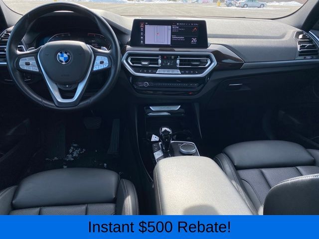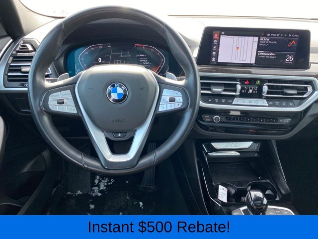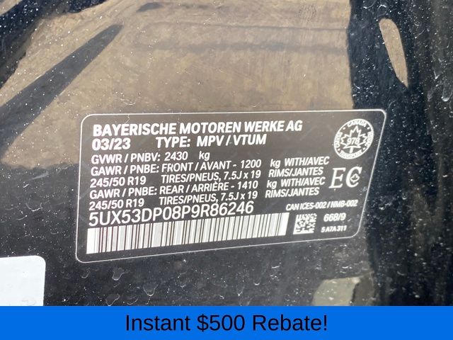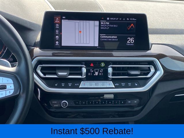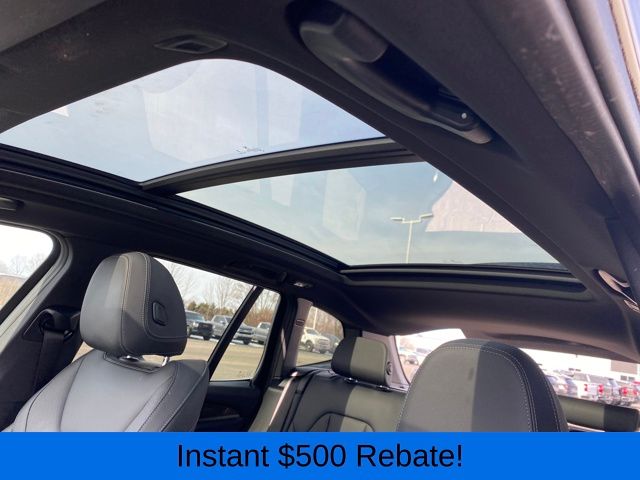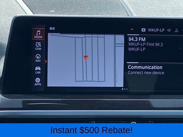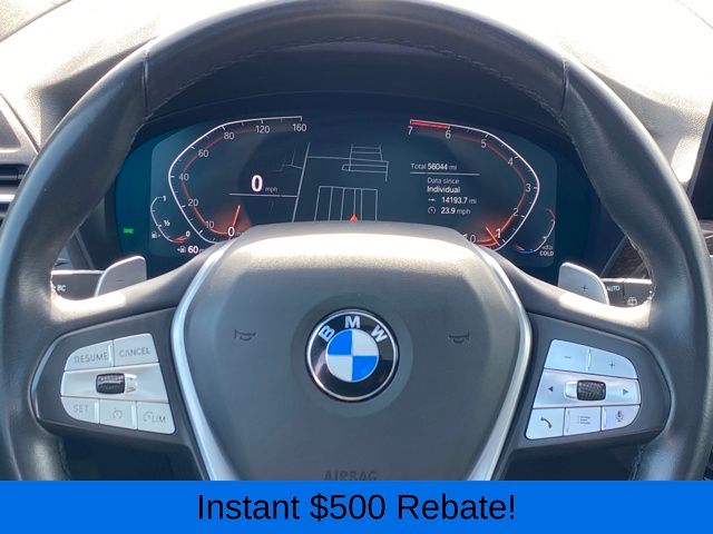 12 Speakers, 3.385 Axle Ratio, 4-Wheel Disc Brakes, ABS brakes, Air Conditioning, Alloy wheels, AM/FM Radio, AM/FM radio: SiriusXM, Apple CarPlay & Android Auto Compatibility, Auto High-beam Headlights, Auto-dimming door mirrors, Auto-dimming Rear-View mirror, Automatic temperature control, BMW Assist eCall, BMW TeleServices, Brake assist, Bumpers: body-color, Connected Package Pro, ConnectedDrive Services, Delay-off headlights, Driver door bin, Driver vanity mirror, Dual front impact airbags, Dual front side impact airbags, Electronic Stability Control, Emergency communication system: BMW Assist eCall, Enhanced USB & Bluetooth w/Smartphone Integration, Exterior Parking Camera Rear, Four wheel independent suspension, Front anti-roll bar, Front Bucket Seats, Front Center Armrest, Front dual zone A/C, Front reading lights, Fully automatic headlights, Garage door transmitter, Genuine wood dashboard insert, Genuine wood door panel insert, Heated door mirrors, Hi-Fi Sound System, Illuminated entry, Knee airbag, Low tire pressure warning, Memory seat, Navigation, Navigation System, Occupant sensing airbag, Outside temperature display, Overhead airbag, Panic alarm, Passenger door bin, Passenger vanity mirror, Perforated SensaTec Upholstery, Power door mirrors, Power driver seat, Power Front Seats, Power Liftgate, Power passenger seat, Power steering, Power windows, Radio data system, Rain sensing wipers, Rear air conditioning, Rear anti-roll bar, Rear reading lights, Rear seat center armrest, Rear window defroster, Rear window wiper, Remote keyless entry, Security system, SiriusXM Satellite Radio, Speed control, Speed-sensing steering, Speed-Sensitive Wipers, Split folding rear seat, Spoiler, Sport Seats, Sport steering wheel, Steering wheel mounted audio controls, Tachometer, Telescoping steering wheel, Tilt steering wheel, Traction control, Trip computer, Turn signal indicator mirrors, Variably intermittent wipers, Wheels: 19" x 7.5" Y-Spoke (Style 693), WiFi Hotspot.