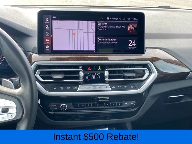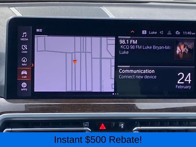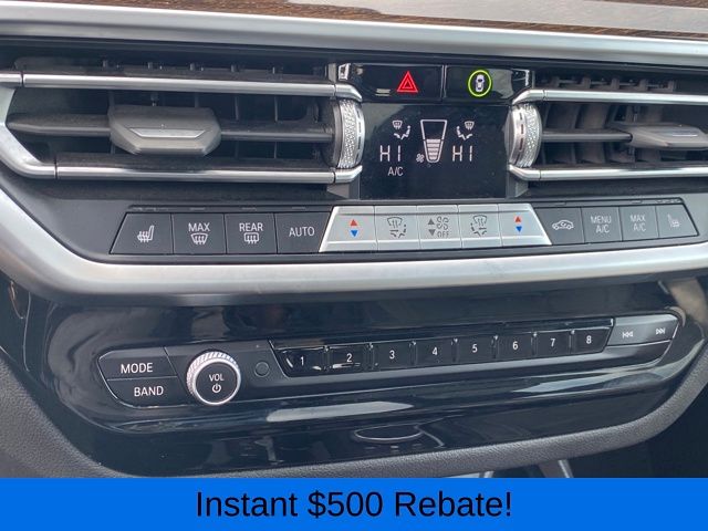Head-Up Display, Heated Front Seats, Heated Steering Wheel, Live Cockpit Pro w/Navigation, Lumbar Support, Navigation System, Panoramic Moonroof, Premium Package, 12 Speakers, 3.385 Axle Ratio, 4-Wheel Disc Brakes, ABS brakes, Air Conditioning, Alloy wheels, AM/FM Radio, AM/FM radio: SiriusXM, Apple CarPlay & Android Auto Compatibility, Auto High-beam Headlights, Auto-dimming door mirrors, Auto-dimming Rear-View mirror, Automatic temperature control, BMW Assist eCall, BMW TeleServices, Brake assist, Bumpers: body-color, Connected Package Pro, ConnectedDrive Services, Delay-off headlights, Driver door bin, Driver vanity mirror, Dual front impact airbags, Dual front side impact airbags, Electronic Stability Control, Emergency communication system: BMW Assist eCall, Enhanced USB & Bluetooth w/Smartphone Integration, Exterior Parking Camera Rear, Four wheel independent suspension, Front anti-roll bar, Front Bucket Seats, Front Center Armrest, Front dual zone A/C, Front reading lights, Fully automatic headlights, Garage door transmitter, Genuine wood dashboard insert, Genuine wood door panel insert, Heated door mirrors, Hi-Fi Sound System, Illuminated entry, Knee airbag, Leather steering wheel, Low tire pressure warning, Memory seat, Navigation, Occupant sensing airbag, Outside temperature display, Overhead airbag, Panic alarm, Passenger door bin, Passenger vanity mirror, Perforated SensaTec Upholstery, Power door mirrors, Power driver seat, Power Front Seats, Power Liftgate, Power passenger seat, Power steering, Power windows, Radio data system, Rain sensing wipers, Rear air conditioning, Rear anti-roll bar, Rear reading lights, Rear seat center armrest, Rear window defroster, Rear window wiper, Remote keyless entry, Security system, SiriusXM w/360L & 1 Yr Platinum Plan Subscription, Speed control, Speed-sensing steering, Speed-Sensitive Wipers, Split folding rear seat, Spoiler, Sport Seats, Sport steering wheel, Steering wheel mounted audio controls, Tachometer, Telescoping steering wheel, Tilt steering wheel, Traction control, Trip computer, Turn signal indicator mirrors, Variably intermittent wipers, Wheels: 19" x 7.5" Y-Spoke (Style 693), WiFi Hotspot, Head-Up Display, Heated Front Seats, Heated Steering Wheel, Live Cockpit Pro w/Navigation, Lumbar Support, Navigation System, Panoramic Moonroof, Premium Package.
