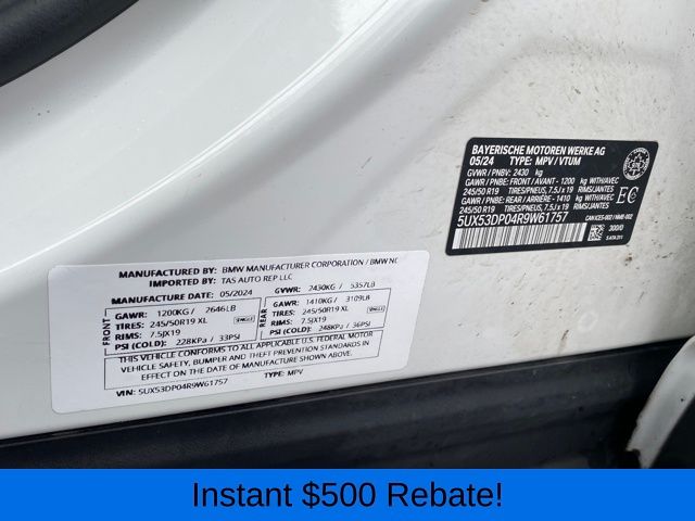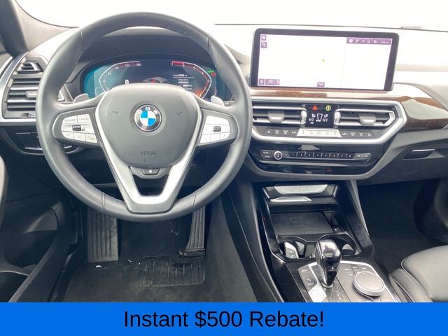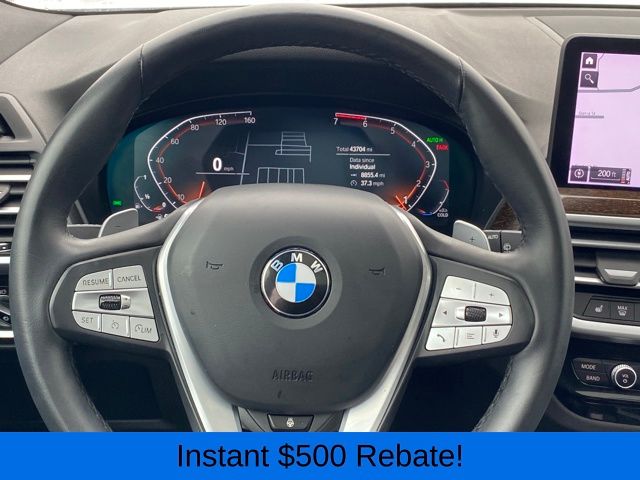 Head-Up Display, Heated Front Seats, Heated Steering Wheel, Live Cockpit Pro w/Navigation, Lumbar Support, Navigation System, Panoramic Moonroof, Premium Package, 12 Speakers, 3.385 Axle Ratio, 4-Wheel Disc Brakes, ABS brakes, Air Conditioning, Alloy wheels, AM/FM Radio, AM/FM radio: SiriusXM, Apple CarPlay & Android Auto Compatibility, Auto High-beam Headlights, Auto-dimming door mirrors, Auto-dimming Rear-View mirror, Automatic temperature control, BMW Assist eCall, BMW TeleServices, Brake assist, Bumpers: body-color, Connected Package Pro, ConnectedDrive Services, Delay-off headlights, Driver door bin, Driver vanity mirror, Dual front impact airbags, Dual front side impact airbags, Electronic Stability Control, Emergency communication system: BMW Assist eCall, Enhanced USB & Bluetooth w/Smartphone Integration, Exterior Parking Camera Rear, Four wheel independent suspension, Front anti-roll bar, Front Bucket Seats, Front Center Armrest, Front dual zone A/C, Front reading lights, Fully automatic headlights, Garage door transmitter, Genuine wood dashboard insert, Genuine wood door panel insert, Heated door mirrors, Hi-Fi Sound System, Illuminated entry, Knee airbag, Leather steering wheel, Low tire pressure warning, Memory seat, Navigation, Occupant sensing airbag, Outside temperature display, Overhead airbag, Panic alarm, Passenger door bin, Passenger vanity mirror, Perforated SensaTec Upholstery, Power door mirrors, Power driver seat, Power Front Seats, Power Liftgate, Power passenger seat, Power steering, Power windows, Radio data system, Rain sensing wipers, Rear air conditioning, Rear anti-roll bar, Rear reading lights, Rear seat center armrest, Rear window defroster, Rear window wiper, Remote keyless entry, Security system, SiriusXM w/360L & 1 Yr Platinum Plan Subscription, Speed control, Speed-sensing steering, Speed-Sensitive Wipers, Split folding rear seat, Spoiler, Sport Seats, Sport steering wheel, Steering wheel mounted audio controls, Tachometer, Telescoping steering wheel, Tilt steering wheel, Traction control, Trip computer, Turn signal indicator mirrors, Variably intermittent wipers, Wheels: 19" x 7.5" Y-Spoke (Style 693), WiFi Hotspot, Head-Up Display, Heated Front Seats, Heated Steering Wheel, Live Cockpit Pro w/Navigation, Lumbar Support, Navigation System, Panoramic Moonroof, Premium Package.