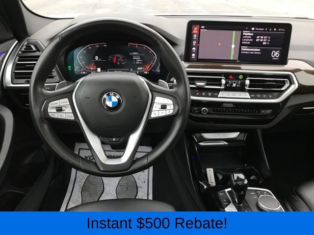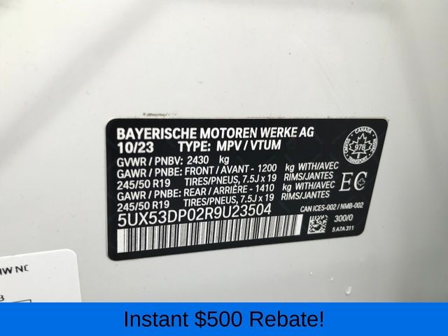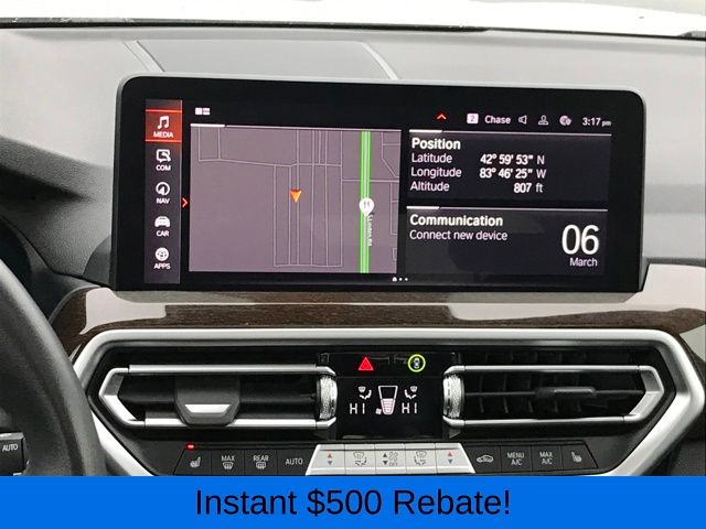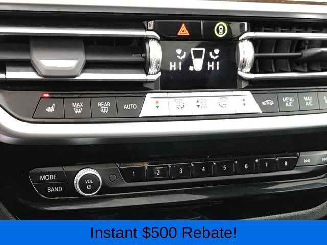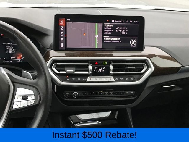 12 Speakers, 3.385 Axle Ratio, 4-Wheel Disc Brakes, ABS brakes, Air Conditioning, Alloy wheels, AM/FM Radio, AM/FM radio: SiriusXM, Apple CarPlay & Android Auto Compatibility, Auto High-beam Headlights, Auto-dimming door mirrors, Auto-dimming Rear-View mirror, Automatic temperature control, BMW Assist eCall, BMW TeleServices, Brake assist, Bumpers: body-color, Connected Package Pro, ConnectedDrive Services, Delay-off headlights, Driver door bin, Driver vanity mirror, Dual front impact airbags, Dual front side impact airbags, Electronic Stability Control, Emergency communication system: BMW Assist eCall, Enhanced USB & Bluetooth w/Smartphone Integration, Exterior Parking Camera Rear, Four wheel independent suspension, Front anti-roll bar, Front Bucket Seats, Front Center Armrest, Front dual zone A/C, Front reading lights, Fully automatic headlights, Garage door transmitter, Genuine wood dashboard insert, Genuine wood door panel insert, Heated door mirrors, Hi-Fi Sound System, Illuminated entry, Knee airbag, Leather steering wheel, Low tire pressure warning, Memory seat, Navigation, Navigation System, Occupant sensing airbag, Outside temperature display, Overhead airbag, Panic alarm, Passenger door bin, Passenger vanity mirror, Perforated SensaTec Upholstery, Power door mirrors, Power driver seat, Power Front Seats, Power Liftgate, Power passenger seat, Power steering, Power windows, Radio data system, Rain sensing wipers, Rear air conditioning, Rear anti-roll bar, Rear reading lights, Rear seat center armrest, Rear window defroster, Rear window wiper, Remote keyless entry, Security system, SiriusXM w/360L & 1 Yr Platinum Plan Subscription, Speed control, Speed-sensing steering, Speed-Sensitive Wipers, Split folding rear seat, Spoiler, Sport Seats, Sport steering wheel, Steering wheel mounted audio controls, Tachometer, Telescoping steering wheel, Tilt steering wheel, Traction control, Trip computer, Turn signal indicator mirrors, Variably intermittent wipers, Wheels: 19" x 7.5" Y-Spoke (Style 693), WiFi Hotspot.