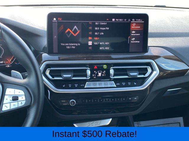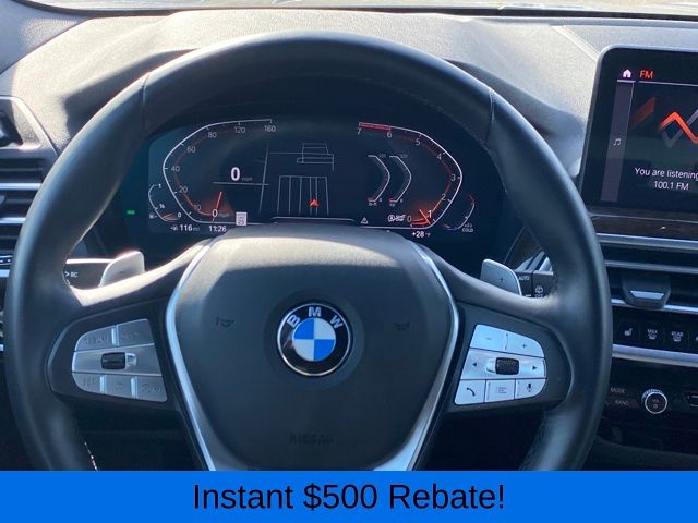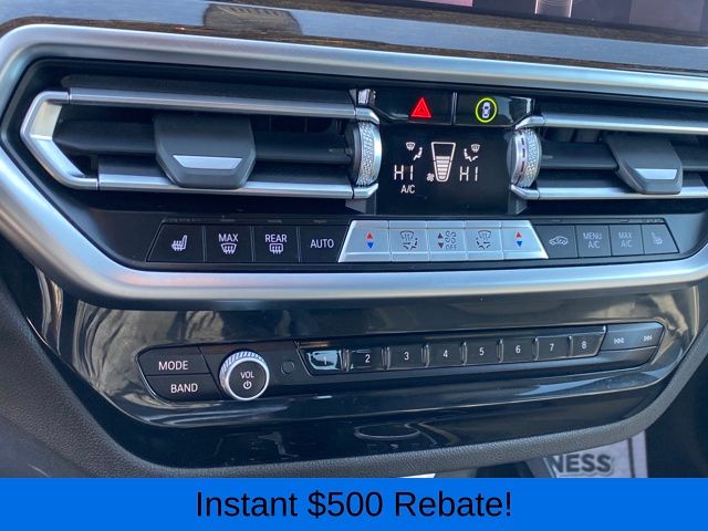 12 Speakers, 3.385 Axle Ratio, 4-Wheel Disc Brakes, ABS brakes, Air Conditioning, Alloy wheels, AM/FM Radio, AM/FM radio: SiriusXM, Apple CarPlay & Android Auto Compatibility, Auto High-beam Headlights, Auto-dimming door mirrors, Auto-dimming Rear-View mirror, Automatic temperature control, BMW Assist eCall, BMW TeleServices, Brake assist, Bumpers: body-color, Connected Package Pro, ConnectedDrive Services, Delay-off headlights, Driver door bin, Driver vanity mirror, Dual front impact airbags, Dual front side impact airbags, Electronic Stability Control, Emergency communication system: BMW Assist eCall, Enhanced USB & Bluetooth w/Smartphone Integration, Exterior Parking Camera Rear, Four wheel independent suspension, Front anti-roll bar, Front Bucket Seats, Front Center Armrest, Front dual zone A/C, Front reading lights, Fully automatic headlights, Garage door transmitter, Genuine wood dashboard insert, Genuine wood door panel insert, Heated door mirrors, Hi-Fi Sound System, Illuminated entry, Knee airbag, Leather steering wheel, Low tire pressure warning, Memory seat, Navigation, Navigation System, Occupant sensing airbag, Outside temperature display, Overhead airbag, Panic alarm, Passenger door bin, Passenger vanity mirror, Perforated SensaTec Upholstery, Power door mirrors, Power driver seat, Power Front Seats, Power Liftgate, Power passenger seat, Power steering, Power windows, Radio data system, Rain sensing wipers, Rear air conditioning, Rear anti-roll bar, Rear reading lights, Rear seat center armrest, Rear window defroster, Rear window wiper, Remote keyless entry, Security system, SiriusXM w/360L & 1 Yr Platinum Plan Subscription, Speed control, Speed-sensing steering, Speed-Sensitive Wipers, Split folding rear seat, Spoiler, Sport Seats, Sport steering wheel, Steering wheel mounted audio controls, Tachometer, Telescoping steering wheel, Tilt steering wheel, Traction control, Trip computer, Turn signal indicator mirrors, Variably intermittent wipers, Wheels: 19" x 7.5" Y-Spoke (Style 693), WiFi Hotspot.
