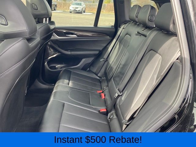 Under the hood, this X3 boasts a robust I4 engine paired with an 8-Speed Automatic Sport transmission, delivering a thrilling and efficient driving experience with an EPA-estimated 21 mpg in the city and 28 mpg on the highway.