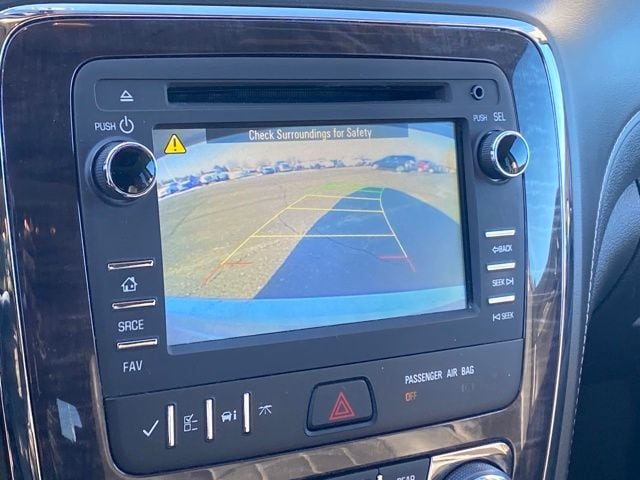 3.16 Axle Ratio, 3rd Row All-Weather Floor Mats, 3rd row seats: split-bench, 4-Wheel Disc Brakes, 4500lbs Trailering Package, 6 Speakers, 7-Passenger Seating, ABS brakes, Air Conditioning, All-Weather Cargo Mat (LPO), All-Weather Floor Mats, Alloy wheels, AM/FM radio: SiriusXM, Auto-dimming Rear-View mirror, Automatic temperature control, Brake assist, Buick Interior Protection Package (LPO), Bumpers: body-color, CD player, Compass, Delay-off headlights, Driver door bin, Driver vanity mirror, Dual front impact airbags, Dual front side impact airbags, Electronic Stability Control, Emergency communication system: OnStar Guidance, Exterior Parking Camera Rear, Four wheel independent suspension, Front anti-roll bar, Front Bucket Seats, Front Center Armrest w/Storage, Front dual zone A/C, Front reading lights, Fully automatic headlights, Garage door transmitter, Heated door mirrors, Heated front seats, Heated steering wheel, Heavy-Duty Cooling System, High intensity discharge headlights: Bi-Xenon, Illuminated entry, Leather steering wheel, Low tire pressure warning, Memory seat, Occupant sensing airbag, Outside temperature display, Overhead airbag, Panic alarm, Passenger door bin, Passenger vanity mirror, Perforated Leather-Appointed Seat Trim, Power door mirrors, Power driver seat, Power Liftgate, Power passenger seat, Power steering, Power Tilt-Sliding Moonroof, Power windows, Preferred Equipment Group 1SL, Radio data system, Radio: Color Touch AM/FM/CD w/IntelliLink, Rear air conditioning, Rear anti-roll bar, Rear Parking Sensors, Rear reading lights, Rear window defroster, Rear window wiper, Remote keyless entry, Roof rack: rails only, Security system, SiriusXM Satellite Radio, Speed control, Speed-sensing steering, Spoiler, Steering wheel mounted audio controls, Tachometer, Telescoping steering wheel, Tilt steering wheel, Traction control, Trailer Hitch, Trip computer, Turn signal indicator mirrors, Variably intermittent wipers, Voltmeter, Wheels: 19" 10-Spoke Aluminum, Wheels: 19" Chrome-Clad Cast Aluminum.
