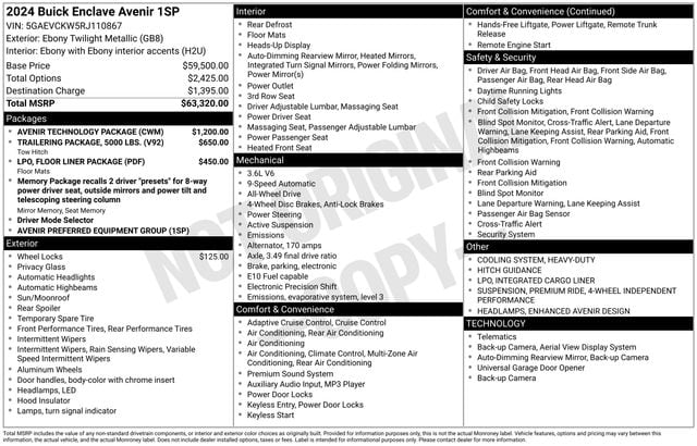 The Avenir Technology Package elevates the driving experience with a premium suspension system, enhanced steering calibration, and Buick's signature Avenir-specific headlamp design. The Trailering Package further enhances the Enclave's capabilities, with a heavy-duty cooling system and advanced hitch guidance features that make towing a breeze.