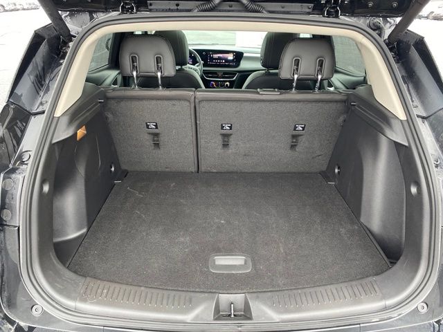 2 USB Ports (1 Type-A, 1 Type-C), 2-Way Power Driver Lumbar Control, 3.17 Final Drive Axle Ratio, 4-Way Manual Passenger Seat Adjuster, 4-Wheel Disc Brakes, 6-Way Manual Driver Seat Adjuster, 7 Speakers, 8-Way Power Driver Seat Adjuster, ABS brakes, Air Conditioning, All-Weather Floor Liners (LPO), Alloy wheels, AM/FM radio: SiriusXM, Auto High-beam Headlights, Automatic temperature control, Brake assist, Bumpers: body-color, Comfort Package, Compass, Delay-off headlights, Driver door bin, Driver vanity mirror, Dual front impact airbags, Dual front side impact airbags, Electronic Stability Control, Emergency communication system: OnStar and Buick connected services capable, Enhanced Performance 7-Speaker System w/Amplifier, Experience Buick Package, Flat-Folding Front Passenger Seatback, Front anti-roll bar, Front Bucket Seats, Front Center Armrest, Front reading lights, Front wheel independent suspension, Fully automatic headlights, Heated door mirrors, Heated Driver & Front Passenger Seats, Heated Steering Wheel, Illuminated entry, Knee airbag, Leatherette Seat Trim, Low tire pressure warning, Occupant sensing airbag, Outside temperature display, Overhead airbag, Overhead console, Panic alarm, Passenger door bin, Passenger vanity mirror, Power door mirrors, Power Liftgate, Power Panoramic Tilt-Sliding Moonroof, Power steering, Power windows, Preferred Equipment Group 1SD, Radio data system, Radio: Audio System w/AM/FM, Rear Center Armrest, Rear reading lights, Rear side impact airbag, Rear window defroster, Rear window wiper, Remote keyless entry, Remote Vehicle Starter System, Ride & Handling Suspension, Security system, SiriusXM, Speed control, Speed-sensing steering, Split folding rear seat, Spoiler, Sport steering wheel, Steering wheel mounted audio controls, Tachometer, Telescoping steering wheel, Tilt steering wheel, Traction control, Trip computer, Variably intermittent wipers, Wheels: 18" Gloss Black Aluminum, Wheels: 19" Gloss Black Aluminum, Wireless Apple CarPlay/Wireless Android Auto.