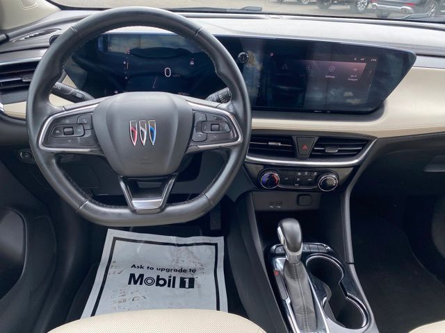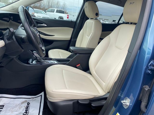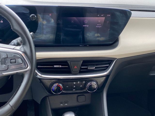 2 USB Ports (1 Type-A, 1 Type-C), 3.17 Final Drive Axle Ratio, 4-Way Manual Passenger Seat Adjuster, 4-Wheel Disc Brakes, 6-Way Manual Driver Seat Adjuster, 7 Speakers, ABS brakes, Air Conditioning, Alloy wheels, AM/FM radio: SiriusXM, Auto High-beam Headlights, Automatic temperature control, Brake assist, Bumpers: body-color, Compass, Delay-off headlights, Driver door bin, Driver vanity mirror, Dual front impact airbags, Dual front side impact airbags, Electronic Stability Control, Emergency communication system: OnStar and Buick connected services capable, Enhanced Performance 7-Speaker System w/Amplifier, Front anti-roll bar, Front Bucket Seats, Front Center Armrest, Front License Plate Bracket, Front reading lights, Front wheel independent suspension, Fully automatic headlights, Heated door mirrors, Illuminated entry, Knee airbag, Leatherette Seat Trim, Low tire pressure warning, Occupant sensing airbag, Outside temperature display, Overhead airbag, Overhead console, Panic alarm, Passenger door bin, Passenger vanity mirror, Power door mirrors, Power steering, Power windows, Preferred Equipment Group 1SD, Radio data system, Radio: Audio System w/AM/FM, Rear reading lights, Rear side impact airbag, Rear window defroster, Rear window wiper, Remote keyless entry, Ride & Handling Suspension, Security system, SiriusXM, Speed control, Speed-sensing steering, Split folding rear seat, Spoiler, Sport Pedal Kit (LPO), Sport steering wheel, Steering wheel mounted audio controls, Tachometer, Telescoping steering wheel, Tilt steering wheel, Traction control, Trip computer, Variably intermittent wipers, Wheels: 18" Gloss Black Aluminum, Wireless Apple CarPlay/Wireless Android Auto.