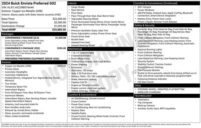 This 2024 Buick Envista Preferred comes equipped with an impressive array of features, including: