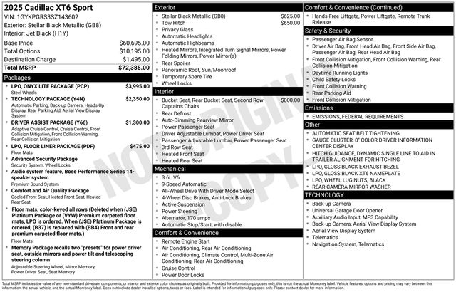Elevate your driving experience with the 2025 Cadillac XT6 Sport's impressive array of cutting-edge features. Enjoy the convenience of Wireless Apple CarPlay, Wireless Android Auto, and the Bose Performance Series Audio System, which will immerse you in a world of exceptional sound. The Head-Up Display and Surround Vision Recorder keep you informed and aware, while the Reverse Automatic Braking and Automatic Parking Assist with Braking provide added peace of mind.
