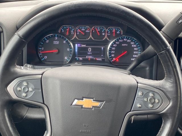 3.42 Rear Axle Ratio, 4-Wheel Disc Brakes, 4.2" Diagonal Color Display Driver Info Center, 40/20/40 Front Split Bench Seat, 6 Speakers, 6" Rectangular Chromed Tubular Assist Steps (LPO), ABS brakes, Air Conditioning, Alloy wheels, AM/FM radio: SiriusXM, Black Molded Splash Guards (LPO), Body Color Bodyside Moldings, Body-Color Door Handles, Body-Color Mirror Caps, Body-Color Power-Adjustable Heated Outside Mirrors, Bodyside moldings, Brake assist, CD player, Chevrolet 4G LTE, Chevrolet Connected Access, Cloth Seat Trim, Color-Keyed Carpeting Floor Covering, Compass, Deep-Tinted Glass, Delay-off headlights, Driver & Fr Passenger Illuminated Vanity Mirrors, Driver door bin, Driver vanity mirror, Dual front impact airbags, Dual front side impact airbags, Electronic AutoTrac Transfer Case, Electronic Stability Control, Emergency communication system: OnStar and Chevrolet connected services capable, Exterior Parking Camera Rear, Front anti-roll bar, Front Center Armrest w/Storage, Front reading lights, Front wheel independent suspension, Fully automatic headlights, HD Radio, Heated door mirrors, High-Intensity Discharge Headlights, Illuminated entry, Integrated Trailer Brake Controller, Leather Wrapped Steering Wheel, Low tire pressure warning, Manual Tilt-Wheel Steering Column, Occupant sensing airbag, OnStar & Chevrolet Connected Services Capable, Option Pkg Discount Not Desired Acknowledgement, Outside temperature display, Overhead airbag, Overhead console, Panic alarm, Passenger door bin, Passenger vanity mirror, Power door mirrors, Power steering, Power windows, Premium audio system: Chevrolet MyLink, Radio data system, Radio: AM/FM 8" Diagonal Color Touch Screen, Rear 60/40 Folding Bench Seat (Folds Up), Rear reading lights, Rear step bumper, Rear Wheelhouse Liners, Rear-Window Electric Defogger, Remote Keyless Entry, Remote keyless entry, Remote Locking Tailgate, Single Slot CD/MP3 Player, SiriusXM Radio, Speed control, Speed-sensing steering, Split folding rear seat, Steering Wheel Audio Controls, Steering wheel mounted audio controls, Tachometer, Thin Profile LED Fog Lamps, Tilt steering wheel, Traction control, Trip computer, Variably intermittent wipers, Voltmeter.