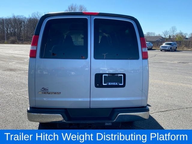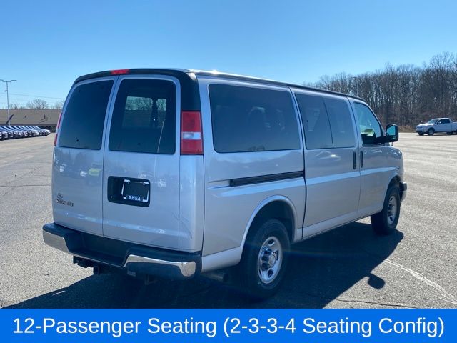 12-Passenger Seating (2-3-3-4 Seating Config), Heavy-Duty Trailering Equipment, Trailer Hitch Weight Distributing Platform, 16" x 6.5" Steel Wheels, 2 Speakers, 220 Amps Alternator, 3.42 Rear Axle Ratio, 3rd row seats: bench, 4-Wheel Disc Brakes, 4th-Row Bench Seat, 6-Way Power Driver Seat Adjuster, a 770 CCA Heavy-Duty Maintenance-Free Battery for those cold mornings, ABS brakes, Air Conditioning, AM/FM radio, AM/FM Stereo w/MP3 Player, Bumpers: chrome, Chrome Appearance Package, Chrome Grille, Compass, Custom Cloth Seat Trim, Delay-off headlights, Deluxe Console w/Swing Out Storage Bin, Driver door bin, Driver vanity mirror, Driver's Seat Mounted Armrest, Dual front impact airbags, Dual front side impact airbags, Electric Rear-Window Defogger, Electronic Stability Control, Emergency communication system: OnStar and Chevrolet connected services capable, Forward Collision Alert, Front & Rear Chrome Bumpers w/Step-Pad, Front anti-roll bar, Front Bucket Seats, Front reading lights, Front wheel independent suspension, Full-Floor Color-Keyed Carpeting, Fully automatic headlights, Heavy-Duty Rear Locking Differential, High & Low Dual-Note Horn, Illuminated entry, Lane Departure Warning System, Leather-Wrapped Steering Wheel, Low tire pressure warning, Occupant sensing airbag, Outside Temperature Display, Overhead airbag, Panic alarm, Passenger cancellable airbag, Passenger door bin, Passenger seat mounted armrest, Passenger vanity mirror, Power steering, Power windows, Power-Adjustable Black Outside Heated Mirrors, Preferred Equipment Group 1LT, Rear air conditioning, Rear reading lights, Reclining Front Bucket Seats w/Inboard Armrests, Remote Keyless Entry, Remote keyless entry, Remote Vehicle Starter System, Security system, SiriusXM Radio, Sliding Passenger-Side Door, Speed control, Steering Wheel Mounted Audio Controls, Tachometer, Theft Alarm Notification, Tilt steering wheel, Traction control, Trip computer, USB Port, Variably intermittent wipers, Voltmeter, Wheel Trim w/Chrome Center Caps, 12-Passenger Seating (2-3-3-4 Seating Config), Heavy-Duty Trailering Equipment, Trailer Hitch Weight Distributing Platform.