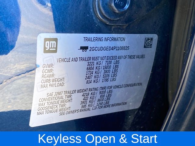 10-Way Power Driver Seat w/Lumbar, 10-Way Power Passenger Seat Adjuster w/Lumbar, 12.3" Multicolor Reconfigurable Digital Display, 120-Volt Instrument Panel Power Outlet, Apple CarPlay/Android Auto, Auto-Dimming Inside Rear-View Mirror, Auto-Locking Rear Differential, Bluetooth® For Phone, Chrome Mirror Caps, Color-Keyed Carpeting Floor Covering, Compass, Deep-Tinted Glass, Driver Memory, Dual Rear USB Ports (Charge Only), Electric Rear-Window Defogger, Electrical Steering Column Lock, Electronic Cruise Control, Front Frame-Mounted Black Recovery Hooks, Front LED Fog Lamps, Front Rainsensing Wipers, Front Rubberized Vinyl Floor Mats, Heated Driver & Front Outboard Passenger Seats, Heated Steering Wheel, Hitch Guidance w/Hitch View, Integrated Trailer Brake Controller, Keyless Open & Start, LED Cargo Area Lighting, LTZ Convenience Package, LTZ Plus Package, OnStar & Chevrolet Connected Services Capable, Outside Heated Power-Adjustable Mirrors, Power Front Passenger Windows w/Express Up/Down, Power Front Windows w/Driver Express Up/Down, Power Rear Windows w/Express Down, Power Tailgate, Preferred Equipment Group 1LZ, Rear Rubberized-Vinyl Floor Mats, Rear Wheelhouse Liners, Remote Vehicle Starter System, Safety Package, SiriusXM w/360L, Standard Tailgate, Steering Wheel Audio Controls, Theft Deterrent System (Unauthorized Entry), Trailering App, Trailering Package, Up-Level Rear Seat w/Storage Package, Wireless Phone Projection, Wrapped Steering Wheel, 120-Volt Bed Mounted Power Outlet, 170 Amp Alternator, 2 USB Data Ports, 3.23 Rear Axle Ratio, 4-Wheel Disc Brakes, 7 Speakers, ABS brakes, Air Conditioning, Alloy wheels, AM/FM radio: SiriusXM with 360L, Auto High-beam Headlights, Auto-dimming door mirrors, Auto-dimming Rear-View mirror, Automatic Emergency Braking, Automatic temperature control, Brake assist, Bumpers: chrome, Chevrolet Connected Access Capable, Delay-off headlights, Driver door bin, Driver vanity mirror, Dual front impact airbags, Dual front side impact airbags, Electronic Stability Control, Electronic Transmission Range Selector Shifter, Floor Mounted Center Console, Following Distance Indicator, Forward Collision Alert, Front anti-roll bar, Front Bucket Seats, Front Center Armrest, Front dual zone A/C, Front fog lights, Front Pedestrian Braking, Front reading lights, Front wheel independent suspension, Fully automatic headlights, HD Surround Vision, Heated door mirrors, Heated front seats, Heated steering wheel, High Capacity Suspension Package, Hitch Guidance, Illuminated entry, IntelliBeam Automatic High Beam On/Off, Lane Keep Assist w/Lane Departure Warning, Low tire pressure warning, Memory seat, Not Equipped w/Steering Column Lock, Not Equipped w/Wireless Charging, Occupant sensing airbag, Outside temperature display, Overhead airbag, Overhead console, Panic alarm, Passenger door bin, Passenger vanity mirror, Perforated Leather-Appointed Front Seat Trim, Perimeter Lighting, Power door mirrors, Power driver seat, Power passenger seat, Power steering, Power Tilt & Telescoping Steering Column, Power windows, Premium audio system: Chevrolet Infotainment 3 Premium, Premium Bose 7-Speaker Sound System, Radio data system, Radio: Chevrolet Infotainment 3 Premium System, Rain sensing wipers