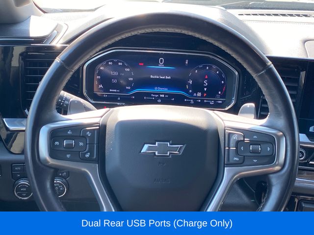 10-Way Power Driver Seat w/Lumbar, 12.3" Multicolor Reconfigurable Digital Display, 120-Volt Instrument Panel Power Outlet, 6-Speaker Audio System, All-Weather Floor Liner (LPO) (AAK), Auto-Locking Rear Differential, Bluetooth® For Phone, Color-Keyed Carpeting Floor Covering, Compass, Convenience Package, Deep-Tinted Glass, Dual Rear USB Ports (Charge Only), Dual-Zone Automatic Climate Control, Electric Rear-Window Defogger, Electrical Steering Column Lock, Electronic Cruise Control, EZ Lift Power Lock & Release Tailgate, Front LED Fog Lamps, HD Rear Vision Camera, Heated Driver & Front Outboard Passenger Seats, Heated Power-Adjustable Outside Mirrors, Heated Steering Wheel, High Gloss Black Mirror Caps, Inside Rear-View Mirror w/Tilt, Keyless Open & Start, LED Cargo Area Lighting, OnStar & Chevrolet Connected Services Capable, Performance Red Recovery Hooks, Power Front Windows w/Driver Express Up/Down, Power Front Windows w/Passenger Express Down, Power Rear Windows w/Express Down, Preferred Equipment Group 2LT, Rear 60/40 Folding Bench Seat (Folds Up), Remote Vehicle Starter System, SiriusXM w/360L, Standard Tailgate, Steering Wheel Audio Controls, Theft Deterrent System (Unauthorized Entry), Trailering Package, Wireless Phone Projection, Wrapped Steering Wheel, 120-Volt Bed Mounted Power Outlet, 2 USB Data Ports, 220 Amp Alternator, 4-Wheel Disc Brakes, 40/20/40 Front Split-Bench Seat, 6 Speakers, ABS brakes, Air Conditioning, Alloy wheels, AM/FM radio: SiriusXM with 360L, Apple CarPlay/Android Auto, Auto High-beam Headlights, Automatic Emergency Braking, Automatic temperature control, Black Name Plates (LPO), Black Tailgate CHEVROLET Lettering (LPO), Brake assist, Chevrolet Connected Access Capable, Chevytec Spray-On Black Bedliner, Cloth Seat Trim, Dark Essentials Package (LPO), Delay-off headlights, Driver door bin, Driver vanity mirror, Dual Exhaust w/Polished Outlets, Dual front impact airbags, Dual front side impact airbags, Electronic Stability Control, Electronic Transmission Range Selector Shifter, Engine Block Heater, Floor Mounted Center Console, Following Distance Indicator, Forward Collision Alert, Front anti-roll bar, Front Bucket Seats, Front Center Armrest w/Storage, Front dual zone A/C, Front fog lights, Front Pedestrian Braking, Front reading lights, Front wheel independent suspension, Fully automatic headlights, Heated door mirrors, Heated front seats, Heated steering wheel, Heavy-Duty Air Filter, Hill Descent Control, Hitch Guidance, Illuminated entry, Integrated Trailer Brake Controller, IntelliBeam Automatic High Beam On/Off, Lane Keep Assist w/Lane Departure Warning, Low tire pressure warning, Not Equipped w/Steering Column Lock, Occupant sensing airbag, Outside temperature display, Overhead airbag, Overhead console, Panic alarm, Passenger door bin, Passenger vanity mirror, Power door mirrors, Power driver seat, Power steering, Power windows, Premium audio system: Chevrolet Infotainment 3 Premium, Protection Package, Radio data system, Radio: Chevrolet Infotainment 3 Premium System, Rear reading lights, Rear step bumper, Rear Wheelhouse Liners, Rear window defroster, Remote keyless entry, Security system, Speed control, Speed-sensing steering, Split folding rear seat, Steering