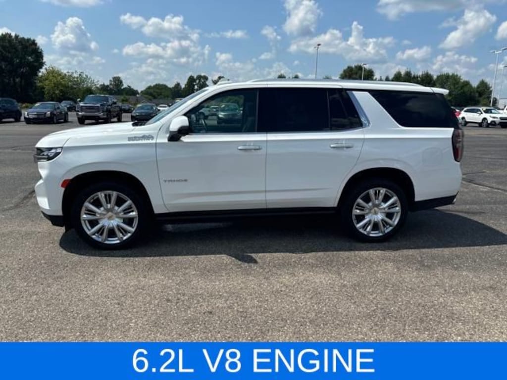 Adaptive suspension, Air Ride Adaptive Suspension, Apple CarPlay/Android Auto, Driver & Front Outboard Passenger Airbags, Dual Exhaust System, Dual-Pane Power Panoramic Sunroof, Exterior Parking Camera Rear, Heated & Ventilated Driver & Front Passenger Seats, High Country Deluxe, Navigation System, Power Liftgate, Power-Retractable Assist Steps, Speed control, 10 Speakers, 15" Diagonal Multi-Color Head-Up Display, 1st & 2nd Row Color-Keyed Carpeted Floor Mats, 2-Speed Active Electronic AutoTrac Transfer Case, 3.23 Rear Axle Ratio, 3rd Row 60/40 Power-Folding Split-Bench Seat, 3rd row seats: split-bench, 4-Wheel Disc Brakes, ABS brakes, Air Conditioning, Alloy wheels, AM/FM radio: SiriusXM with 360L, Auto High-beam Headlights, Auto-dimming door mirrors, Auto-dimming Rear-View mirror, Auto-leveling suspension, Automatic temperature control, Bose 10-Speaker Centerpoint Surround Audio Sys Ft, Brake assist, Bright Front & Rear Door Sill Plates, Bumpers: body-color, Chrome Door Handles w/Body-Color Strip, Color-Keyed Carpeting Floor Covering, Compass, Delay-off headlights, Driver door bin, Driver vanity mirror, Dual front impact airbags, Dual front side impact airbags, Electronic Stability Control, Emergency communication system: OnStar and Chevrolet connected services capable, Enhanced Automatic Emergency Braking, Enhanced Driver Information Center, Floor Console, Four wheel independent suspension, Front anti-roll bar, Front Bucket Seats, Front Center Armrest, Front dual zone A/C, Front High-Back Reclining Bucket Seats, Front reading lights, Fully automatic headlights, Garage door transmitter, Hands-Free Rear Power Programmable Liftgate, HD Surround Vision, Heads-Up Display, Heated 2nd Row Outboard Seats, Heated door mirrors, Heated Driver & Front Passenger Seats, Heated front seats, Heated rear seats, Heated Steering Wheel, Heated steering wheel, Hill Descent Control, Illuminated entry, Infotainment Display, Inside Rearview Auto-Dimming Rear Camera Mirror, Lane Change Alert w/Side Blind Zone Alert, LED Daytime Running Lamps, Low tire pressure warning, Magnetic Ride Control Suspension, Memory seat, Memory Settings, Occupant sensing airbag, Outside Heated Power-Adjustable Mirrors, Outside temperature display, Overhead airbag, Overhead console, Panic alarm, Passenger door bin, Passenger vanity mirror, Perforated Leather Seat Trim, Power door mirrors, Power driver seat, Power passenger seat, Power Release 2nd Row Bucket Seats, Power steering, Power Tilt & Telescopic Steering Column, Power windows, Premium audio system: Chevrolet Infotainment 3 Premium, Radio: Chevrolet Infotainment 3 Premium System, Rain sensing wipers, Rear air conditioning, Rear anti-roll bar, Rear Camera Mirror Washer, Rear Cross Traffic Alert, Rear Pedestrian Alert, Rear reading lights, Rear window defroster, Rear window wiper, Remote keyless entry, Remote Start, Roof rack: rails only, Safety Alert Seat, Security system, Set of 4 Wheel Locks (LPO), SiriusXM Radio w/360L, Speed-sensing steering, Split folding rear seat, Spoiler, Steering wheel memory, Steering wheel mounted audio controls, Tachometer, Telescoping steering wheel, Tilt steering wheel, Traction control, Trip computer, Turn signal indicator m