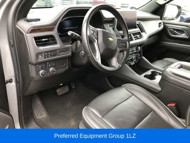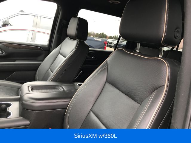 12-Way Power Driver & Passenger Seat Adjusters, 1st & 2nd Row Color-Keyed Carpeted Floor Mats, 2-Speed Active Electronic AutoTrac Transfer Case, 3rd Row 60/40 Power-Folding Split-Bench, Auto-Dimming Inside Rear-View Mirror, Bose 10-Speaker Surround w/CenterPoint, Bright Front & Rear Door Sill Plates, Chrome Door Handles w/Body-Color Strip, Chrome Mirror Caps, Color-Keyed Carpeting Floor Covering, Driver & Front Outboard Passenger Airbags, Dual Exhaust System, Enhanced Driver Information Center, Floor Console, Hands-Free Rear Power Programmable Liftgate, Heated 2nd Row Outboard Seats, Heated Driver & Front Passenger Seats, Heated Steering Wheel, Hill Descent Control, Infotainment Display, Lane Change Alert w/Side Blind Zone Alert, LED Daytime Running Lamps, Memory Settings, Navigation System, Outside Heated Power-Adjustable Mirrors, Perforated Heated & Ventilated Seats, Power Release 2nd Row Bucket Seats, Power Tilt & Telescopic Steering Column, Preferred Equipment Group 1LZ, Rear Cross Traffic Alert, Remote Start, Safety Alert Seat, SiriusXM w/360L, Universal Home Remote, Wireless Charging, Wrapped Steering Wheel, 10 Speakers, 20" x 9" Polished Aluminum Wheels, 2nd Row Pwr Release 60/40 Split-Folding Bench Seat, 3.23 Rear Axle Ratio, 3rd row seats: split-bench, 4-Wheel Disc Brakes, ABS brakes, Adaptive suspension, Air Conditioning, Alloy wheels, AM/FM radio: SiriusXM with 360L, Apple CarPlay/Android Auto, Auto High-beam Headlights, Auto-dimming door mirrors, Auto-dimming Rear-View mirror, Auto-leveling suspension, Automatic temperature control, Brake assist, Bumpers: body-color, Compass, Delay-off headlights, Deleted 3 Years of Remote Access, Driver door bin, Driver vanity mirror, Dual front impact airbags, Dual front side impact airbags, Electronic Stability Control, Emergency communication system: OnStar and Chevrolet connected services capable, Floor Console w/Storage Area, Four wheel independent suspension, Front anti-roll bar, Front Bucket Seats, Front Center Armrest, Front dual zone A/C, Front reading lights, Fully automatic headlights, Garage door transmitter, Heated door mirrors, Heated front seats, Heated rear seats, Heated steering wheel, Illuminated entry, Low tire pressure warning, Magnetic Ride Control Suspension, Memory seat, Occupant sensing airbag, Outside temperature display, Overhead airbag, Overhead console, Panic alarm, Passenger door bin, Passenger vanity mirror, Perforated Leather Seating Surfaces, Power door mirrors, Power driver seat, Power Liftgate, Power passenger seat, Power steering, Power windows, Premium audio system: Chevrolet Infotainment 3 Premium, Radio: Chevrolet Infotainment 3 Premium System, Rain sensing wipers, Rear air conditioning, Rear anti-roll bar, Rear reading lights, Rear window defroster, Rear window wiper, Remote keyless entry, Roof rack: xxxxxx, Security system, Speed control, Speed-sensing steering, Split folding rear seat, Spoiler, Steering wheel memory, Steering wheel mounted audio controls, Tachometer, Telescoping steering wheel, Tilt steering wheel, Traction control, Trip computer, Turn signal indicator mirrors, Variably intermittent wipers, Ventilated front seats, Voltmeter, 12-Way Power Driver & Passenger Seat Adjusters, 1st & 2nd Row Color-Keyed Carpeted Floor Mats, 2-Speed Active Electronic AutoTrac Transfer Case, 3rd Row 60/40 Power-Folding Split-Bench, Auto-Dimming Inside Rear-View Mirror, Bose 10-Speaker Surround w/CenterPoint, Bright Front & Rear Door Sill Plates, Chrome Door Handles w/Body-Color Strip, Chrome Mirror Caps, Color-Keyed Carpeting Floor Covering, Driver & Front Outboard Passenger Airbags, Dual Exhaust System, Enhanced Driver Information Center, Floor Console, Hands-Free Rear Power Programmable Liftgate, Heated 2nd Row Outboard Seats, Heated Driver & Front Passenger Seats, Heated Steering Wheel