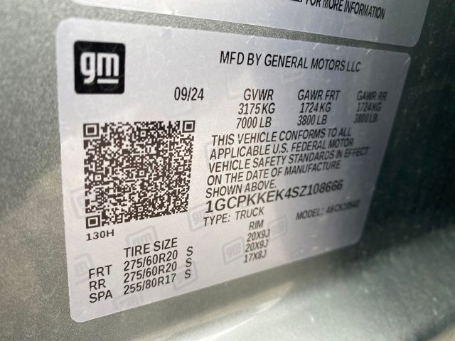 10-Way Power Driver Seat w/Lumbar, 120-Volt Interior Power Outlet, Convenience Package, Dual Rear USB Ports (Charge Only), Dual-Zone Automatic Climate Control, Heated Driver & Front Outboard Passenger Seats, Heated Steering Wheel, Keyless Open & Start, LED Cargo Area Lighting, Manual Tilt/Telescoping Steering Column, Wrapped Steering Wheel, 12.3" Multicolor Reconfigurable Digital Display, 120-Volt Bed Mounted Power Outlet, 3.42 Rear Axle Ratio, 4-Wheel Disc Brakes, 40/20/40 Front Split-Bench Seat, 6 Speakers, 6-Speaker Audio System, ABS brakes, Air Conditioning, All-Star Edition, Alloy wheels, AM/FM radio: SiriusXM with 360L, Apple CarPlay/Android Auto, Auto High-beam Headlights, Auto-Locking Rear Differential, Automatic Emergency Braking, Automatic temperature control, Bluetooth® For Phone, Brake assist, Bumpers: chrome, Chrome Mirror Caps, Cloth Seat Trim, Color-Keyed Carpeting Floor Covering, Compass, Deep-Tinted Glass, Delay-off headlights, Driver door bin, Driver vanity mirror, Dual front impact airbags, Dual front side impact airbags, Electric Rear-Window Defogger, Electronic Cruise Control, Electronic Stability Control, Emergency communication system: OnStar, Following Distance Indicator, Forward Collision Alert, Front anti-roll bar, Front Center Armrest w/Storage, Front dual zone A/C, Front Frame-Mounted Black Recovery Hooks, Front Pedestrian Braking, Front reading lights, Front wheel independent suspension, Fully automatic headlights, HD Rear Vision Camera, Heated door mirrors, Heated front seats, Heated steering wheel, High Capacity Suspension Package, Hitch Guidance, Illuminated entry, Integrated Trailer Brake Controller, IntelliBeam Automatic High Beam On/Off, Lane Keep Assist w/Lane Departure Warning, Low tire pressure warning, Occupant sensing airbag, OnStar Services Capable, Outside temperature display, Overhead airbag, Overhead console, Panic alarm, Passenger door bin, Passenger vanity mirror, Power door mirrors, Power driver seat, Power Front Windows w/Driver Express Up/Down, Power Front Windows w/Passenger Express Down, Power Rear Windows w/Express Down, Power steering, Power windows, Premium audio system: Chevrolet Infotainment 3 Premium, Radio data system, Radio: Chevrolet Infotainment 3 Premium System, Rear 60/40 Folding Bench Seat (Folds Up), Rear reading lights, Rear step bumper, Rear window defroster, Remote keyless entry, Remote Vehicle Starter System, Security system, SiriusXM w/360L Trial Subscription, Speed control, Speed-sensing steering, Split folding rear seat, Standard Suspension Package, Steering Wheel Audio Controls, Steering wheel mounted audio controls, Tachometer, Teen Driver, Telescoping steering wheel, Theft Deterrent System (Unauthorized Entry), Tilt steering wheel, Tire Pressure Monitoring System, Traction control, Trailering Package, Trip computer, Variably intermittent wipers, Voltmeter, Wheels: 18" x 8.5" Bright Silver Painted Aluminum, Wheels: 20" x 9" Painted Aluminum, Wi-Fi Hot Spot Capable, 10-Way Power Driver Seat w/Lumbar, 120-Volt Interior Power Outlet, Convenience Package, Dual Rear USB Ports (Charge Only), Dual-Zone Automatic Climate Control, Heated Driver & Front Outboard Passenger Seats, Heated Steering Wheel, Keyless Open & Start, LED Cargo Area Light