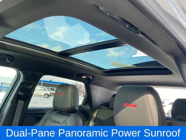 With its striking Mosaic Black Metallic Two-Tone Roof, the TrailBlazer RS stands out from the crowd, exuding a sense of style and sophistication. The 19-inch high-gloss black machined aluminum wheels further accentuate the vehicle's bold and sporty appearance.