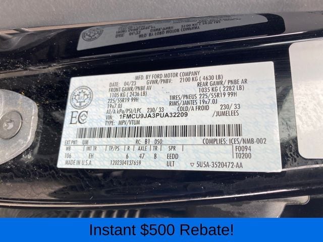 Equipment Group 601A, Exterior Parking Camera Rear, Heated ActiveX Trimmed Front Sport Contour Bucket Seats, Heated front seats, Navigation system: Connected Navigation, Power Liftgate, Speed control, SYNC 4 w/Enhanced Voice Recognition, Wheels: 19" Machined-Face Aluminum, 2.91 Axle Ratio, 4-Wheel Disc Brakes, 6 Speakers, ABS brakes, Air Conditioning, Alloy wheels, AM/FM radio: SiriusXM, AM/FM Stereo, Auto High-beam Headlights, Auto-dimming Rear-View mirror, Automatic temperature control, Brake assist, Bumpers: body-color, Compass, Delay-off headlights, Driver door bin, Driver vanity mirror, Dual front impact airbags, Dual front side impact airbags, Electronic Fuel Door Release, Electronic Stability Control, Emergency communication system: SYNC 4 911 Assist, FordPass Connect, Four wheel independent suspension, Front anti-roll bar, Front Bucket Seats, Front Center Armrest, Front dual zone A/C, Front fog lights, Front reading lights, Fully automatic headlights, Garage door transmitter, Heated door mirrors, Heated steering wheel, Illuminated entry, Knee airbag, Low tire pressure warning, Memory seat, Neutral Towing Capability, Occupant sensing airbag, Outside temperature display, Overhead airbag, Overhead console, Panic alarm, Passenger door bin, Passenger vanity mirror, Pedestrian Alert Sounder, Power door mirrors, Power driver seat, Power passenger seat, Power steering, Power windows, Radio data system, Rain sensing wipers, Rear anti-roll bar, Rear reading lights, Rear seat center armrest, Rear window defroster, Rear window wiper, Remote keyless entry, Security system, Speed-sensing steering, Speed-Sensitive Wipers, Split folding rear seat, Spoiler, Steering wheel mounted audio controls, Telescoping steering wheel, Tilt steering wheel, Traction control, Trip computer, Variably intermittent wipers, ALL WHEEL DRIVE, Equipment Group 601A, Exterior Parking Camera Rear, Heated ActiveX Trimmed Front Sport Contour Bucket Seats, Heated front seats, Navigation system: Connected Navigation, Power Liftgate, Speed control, SYNC 4 w/Enhanced Voice Recognition, Wheels: 19" Machined-Face Aluminum.