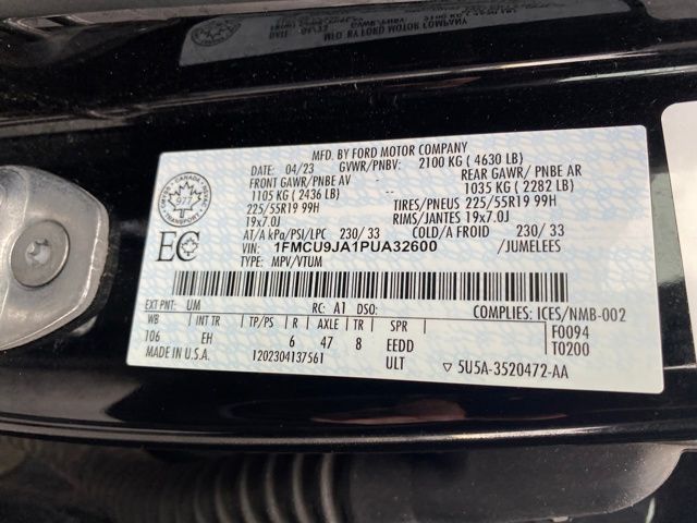 2.91 Axle Ratio, 4-Wheel Disc Brakes, 6 Speakers, ABS brakes, Air Conditioning, Alloy wheels, AM/FM radio: SiriusXM, AM/FM Stereo, Auto High-beam Headlights, Auto-dimming Rear-View mirror, Automatic temperature control, Brake assist, Bumpers: body-color, Compass, Delay-off headlights, Driver door bin, Driver vanity mirror, Dual front impact airbags, Dual front side impact airbags, Electronic Fuel Door Release, Electronic Stability Control, Emergency communication system: SYNC 4 911 Assist, Exterior Parking Camera Rear, FordPass Connect, Four wheel independent suspension, Front anti-roll bar, Front Bucket Seats, Front Center Armrest, Front dual zone A/C, Front fog lights, Front reading lights, Fully automatic headlights, Garage door transmitter, Heated ActiveX Trimmed Front Sport Contour Bucket Seats, Heated door mirrors, Heated front seats, Heated steering wheel, Illuminated entry, Knee airbag, Low tire pressure warning, Memory seat, Navigation system: Connected Navigation, Neutral Towing Capability, Occupant sensing airbag, Outside temperature display, Overhead airbag, Overhead console, Panic alarm, Passenger door bin, Passenger vanity mirror, Pedestrian Alert Sounder, Power door mirrors, Power driver seat, Power Liftgate, Power passenger seat, Power steering, Power windows, Radio data system, Rain sensing wipers, Rear anti-roll bar, Rear reading lights, Rear seat center armrest, Rear window defroster, Rear window wiper, Remote keyless entry, Security system, Speed control, Speed-sensing steering, Speed-Sensitive Wipers, Split folding rear seat, Spoiler, Steering wheel mounted audio controls, SYNC 4 w/Enhanced Voice Recognition, Telescoping steering wheel, Tilt steering wheel, Traction control, Trip computer, Variably intermittent wipers, Wheels: 19" Machined-Face Aluminum.