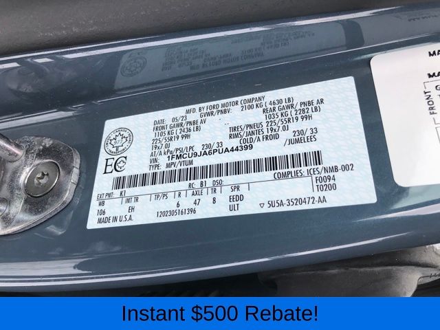 2.91 Axle Ratio, 4-Wheel Disc Brakes, 6 Speakers, ABS brakes, Air Conditioning, Alloy wheels, AM/FM radio: SiriusXM, AM/FM Stereo, Auto High-beam Headlights, Auto-dimming Rear-View mirror, Automatic temperature control, Brake assist, Bumpers: body-color, Compass, Delay-off headlights, Driver door bin, Driver vanity mirror, Dual front impact airbags, Dual front side impact airbags, Electronic Fuel Door Release, Electronic Stability Control, Emergency communication system: SYNC 4 911 Assist, Exterior Parking Camera Rear, FordPass Connect, Four wheel independent suspension, Front anti-roll bar, Front Bucket Seats, Front Center Armrest, Front dual zone A/C, Front fog lights, Front reading lights, Fully automatic headlights, Garage door transmitter, Heated ActiveX Trimmed Front Sport Contour Bucket Seats, Heated door mirrors, Heated front seats, Heated steering wheel, Illuminated entry, Knee airbag, Low tire pressure warning, Memory seat, Navigation system: Connected Navigation, Neutral Towing Capability, Occupant sensing airbag, Outside temperature display, Overhead airbag, Overhead console, Panic alarm, Passenger door bin, Passenger vanity mirror, Pedestrian Alert Sounder, Power door mirrors, Power driver seat, Power Liftgate, Power passenger seat, Power steering, Power windows, Radio data system, Rain sensing wipers, Rear anti-roll bar, Rear reading lights, Rear seat center armrest, Rear window defroster, Rear window wiper, Remote keyless entry, Security system, Speed control, Speed-sensing steering, Speed-Sensitive Wipers, Split folding rear seat, Spoiler, Steering wheel mounted audio controls, SYNC 4 w/Enhanced Voice Recognition, Telescoping steering wheel, Tilt steering wheel, Traction control, Trip computer, Variably intermittent wipers, Wheels: 19" Machined-Face Aluminum.