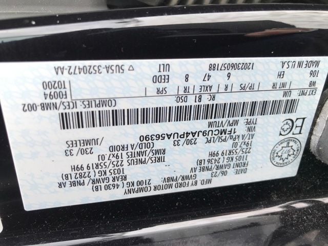 2.91 Axle Ratio, 4-Wheel Disc Brakes, 6 Speakers, ABS brakes, Air Conditioning, Alloy wheels, AM/FM radio: SiriusXM, AM/FM Stereo, Auto High-beam Headlights, Auto-dimming Rear-View mirror, Automatic temperature control, Brake assist, Bumpers: body-color, Compass, Delay-off headlights, Driver door bin, Driver vanity mirror, Dual front impact airbags, Dual front side impact airbags, Electronic Fuel Door Release, Electronic Stability Control, Emergency communication system: SYNC 4 911 Assist, Exterior Parking Camera Rear, FordPass Connect, Four wheel independent suspension, Front anti-roll bar, Front Bucket Seats, Front Center Armrest, Front dual zone A/C, Front fog lights, Front reading lights, Fully automatic headlights, Garage door transmitter, Heated ActiveX Trimmed Front Sport Contour Bucket Seats, Heated door mirrors, Heated front seats, Heated steering wheel, Illuminated entry, Knee airbag, Low tire pressure warning, Memory seat, Navigation system: Connected Navigation, Neutral Towing Capability, Occupant sensing airbag, Outside temperature display, Overhead airbag, Overhead console, Panic alarm, Passenger door bin, Passenger vanity mirror, Pedestrian Alert Sounder, Power door mirrors, Power driver seat, Power Liftgate, Power passenger seat, Power steering, Power windows, Radio data system, Rain sensing wipers, Rear anti-roll bar, Rear reading lights, Rear seat center armrest, Rear window defroster, Rear window wiper, Remote keyless entry, Security system, Speed control, Speed-sensing steering, Speed-Sensitive Wipers, Split folding rear seat, Spoiler, Steering wheel mounted audio controls, SYNC 4 w/Enhanced Voice Recognition, Telescoping steering wheel, Tilt steering wheel, Traction control, Trip computer, Variably intermittent wipers, Wheels: 19" Machined-Face Aluminum.