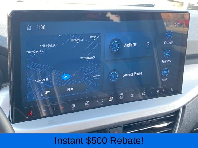 2.91 Axle Ratio, 4-Wheel Disc Brakes, 6 Speakers, ABS brakes, Air Conditioning, Alloy wheels, AM/FM radio: SiriusXM, AM/FM Stereo, Auto High-beam Headlights, Auto-dimming Rear-View mirror, Automatic temperature control, Brake assist, Bumpers: body-color, Compass, Delay-off headlights, Driver door bin, Driver vanity mirror, Dual front impact airbags, Dual front side impact airbags, Electronic Fuel Door Release, Electronic Stability Control, Emergency communication system: SYNC 4 911 Assist, Exterior Parking Camera Rear, FordPass Connect, Four wheel independent suspension, Front anti-roll bar, Front Bucket Seats, Front Center Armrest, Front dual zone A/C, Front fog lights, Front reading lights, Fully automatic headlights, Garage door transmitter, Heated ActiveX Trimmed Front Sport Contour Bucket Seats, Heated door mirrors, Heated front seats, Heated steering wheel, Illuminated entry, Knee airbag, Low tire pressure warning, Memory seat, Navigation system: Connected Navigation, Neutral Towing Capability, Occupant sensing airbag, Outside temperature display, Overhead airbag, Overhead console, Panic alarm, Passenger door bin, Passenger vanity mirror, Pedestrian Alert Sounder, Power door mirrors, Power driver seat, Power Liftgate, Power passenger seat, Power steering, Power windows, Radio data system, Rain sensing wipers, Rear anti-roll bar, Rear reading lights, Rear seat center armrest, Rear window defroster, Rear window wiper, Remote keyless entry, Roof rack: rails only, Security system, Speed control, Speed-sensing steering, Speed-Sensitive Wipers, Split folding rear seat, Spoiler, Steering wheel mounted audio controls, SYNC 4 w/Enhanced Voice Recognition, Tachometer, Telescoping steering wheel, Tilt steering wheel, Traction control, Trip computer, Variably intermittent wipers, Wheels: 19" Machined-Face Aluminum.