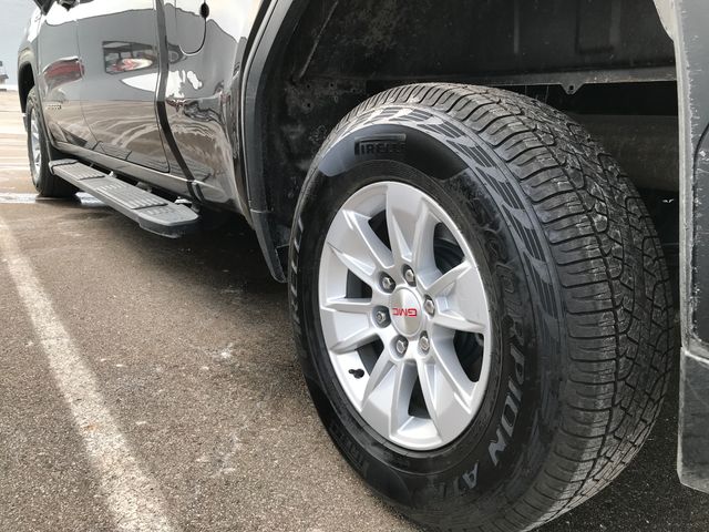 220 Amp Alternator, 3.42 Rear Axle Ratio, 4-Way Manual Driver Seat Adjuster, 4-Way Manual Passenger Seat Adjuster, 4-Wheel Disc Brakes, 6 Speakers, 6-Speaker Audio System Feature, ABS brakes, Air Conditioning, Alloy wheels, AM/FM radio, Apple CarPlay/Android Auto, Brake assist, Bumpers: chrome, Chrome Grille, Cloth Seat Trim, Color-Keyed Carpeting Floor Covering, Compass, Deep-Tinted Glass, Delay-off headlights, Driver door bin, Driver vanity mirror, Dual front impact airbags, Dual front side impact airbags, Electronic Stability Control, Exterior Parking Camera Rear, Front 40/20/40 Split-Bench Seat, Front anti-roll bar, Front Center Armrest w/Storage, Front Frame-Mounted Black Recovery Hooks, Front reading lights, Front Rubberized-Vinyl Floor Mats, Front wheel independent suspension, Fully automatic headlights, GMC 4G LTE, GMC Connected Access, Heated door mirrors, Heavy Duty Suspension, Illuminated entry, Low tire pressure warning, Manual Tilt Wheel Steering Column, Occupant sensing airbag, OnStar & GMC Connected Services Capable, Outside temperature display, Overhead airbag, Overhead console, Panic alarm, Passenger door bin, Passenger vanity mirror, Power Door Locks, Power door mirrors, Power Front Windows w/Driver Express Up/Down, Power Front Windows w/Passenger Express Down, Power Rear Windows w/Express Down, Power steering, Power windows, Premium audio system: GMC Infotainment System, Radio data system, Radio: GMC Infotainment Audio System, Rear reading lights, Rear Rubberized-Vinyl Floor Mats, Rear step bumper, Remote Keyless Entry, Remote keyless entry, Single-Zone Manual/Semi-Automatic Air Conditioning, Speed control, Speed-sensing steering, Split folding rear seat, Steering Wheel Audio Controls, Steering wheel mounted audio controls, Tachometer, Tilt steering wheel, Traction control, Trip computer, Variably intermittent wipers, Voltmeter, Wheels: 17" x 8" Bright Silver Painted Aluminum.