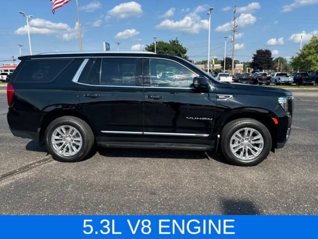 12-Way Power Seat Adjusters, 2 Presets For Outside Rearview Mirrors, 2 Presets For Power Driver Seat, 3rd Row 60/40 Power-Folding Split-Bench Seat, Apple CarPlay/Android Auto, Bose 9-Speaker Stereo Audio System Feature, Bright Chrome Bodyside Moldings, Bright Front & Rear Door Sill Plates, Chrome Door Handles w/Body-Color Strip, Dual-Pane Panoramic Power Sunroof, Front & Rear Park Assist, Hands-Free Power Programmable Rear Liftgate, HD Surround Vision, Heated & Ventilated Driver & Front Passenger Seats, Heated 2nd Row Outboard Position Seats, Heated Automatic Steering Wheel, Heated Driver & Front Passenger Seats, Hitch Guidance w/Hitch View, In-Vehicle Trailering App, Inside Rear-View Auto-Dimming Mirror, Integrated Trailer Brake Controller, Outside Heated Power-Adjustable Mirrors, Power Liftgate, Power Release 2nd Row 60/40 Split-Folding Bench Seat, Power Tilt & Telescopic Steering Column, Preferred Equipment Group 4SA, Rear Pedestrian Alert, Safety Alert Seat, SLT Luxury Package, SLT Luxury Plus Package (DISC), Speed control, Telescoping steering wheel, Tilt steering wheel, Universal Home Remote, Wheels: 20" x 9" 6-Spoke Polished Aluminum, 1st, 2nd & 3rd Row All-Weather Floor Liner (LPO), 3.23 Rear Axle Ratio, 3rd row seats: split-bench, 4-Wheel Disc Brakes, 9 Speakers, ABS brakes, Air Conditioning, Alloy wheels, AM/FM radio: SiriusXM with 360L, Auto High-beam Headlights, Auto-dimming Rear-View mirror, Automatic Emergency Braking, Automatic temperature control, Bodyside moldings, Brake assist, Bumpers: body-color, Compass, Delay-off headlights, Driver door bin, Driver vanity mirror, Dual front impact airbags, Dual front side impact airbags, Electronic Stability Control, Emergency communication system: OnStar and GMC connected services capable, Extra Capacity Cooling System, Following Distance Indicator, Forward Collision Alert, Four wheel independent suspension, Front anti-roll bar, Front Bucket Seats, Front Center Armrest, Front dual zone A/C, Front fog lights, Front Pedestrian Braking, Front reading lights, Fully automatic headlights, Garage door transmitter, HD Radio, Heated door mirrors, Heated front seats, Illuminated entry, IntelliBeam Automatic High Beam On/Off, Lane Change Alert w/Side Blind Zone Alert, Lane Keep Assist w/Lane Departure Warning, Leather steering wheel, Low tire pressure warning, Max Trailering Package, Memory seat, Occupant sensing airbag, Outside temperature display, Overhead airbag, Overhead console, Panic alarm, Passenger door bin, Passenger vanity mirror, Perforated Leather Seating Surfaces, Polished Exhaust Tip, Power door mirrors, Power driver seat, Power passenger seat, Power Release 2nd Row Bucket Seats, Power steering, Power windows, Premium Smooth Ride Suspension, Radio: AM/FM/SiriusXM, Rain sensing wipers, Rear air conditioning, Rear anti-roll bar, Rear Cross Traffic Alert, Rear reading lights, Rear seat center armrest, Rear window defroster, Rear window wiper, Remote keyless entry, Roof rack: rails only, Security system, SiriusXM w/360L, Speed-sensing steering, Split folding rear seat, Spoiler, Steering wheel mounted audio controls, Tachometer, Traction control, Trailer Side Blind Zone Alert, Trip computer, Variably intermittent wipers, Ventilated front seats, Voltmete