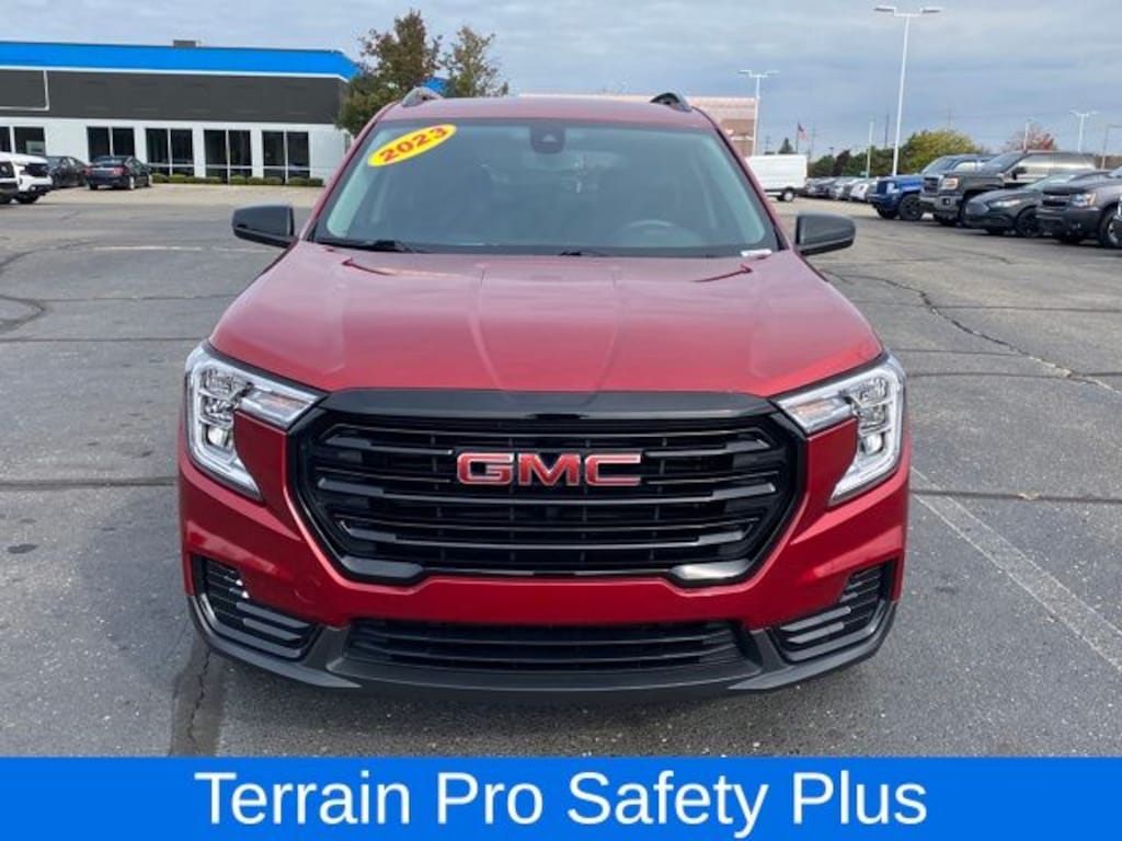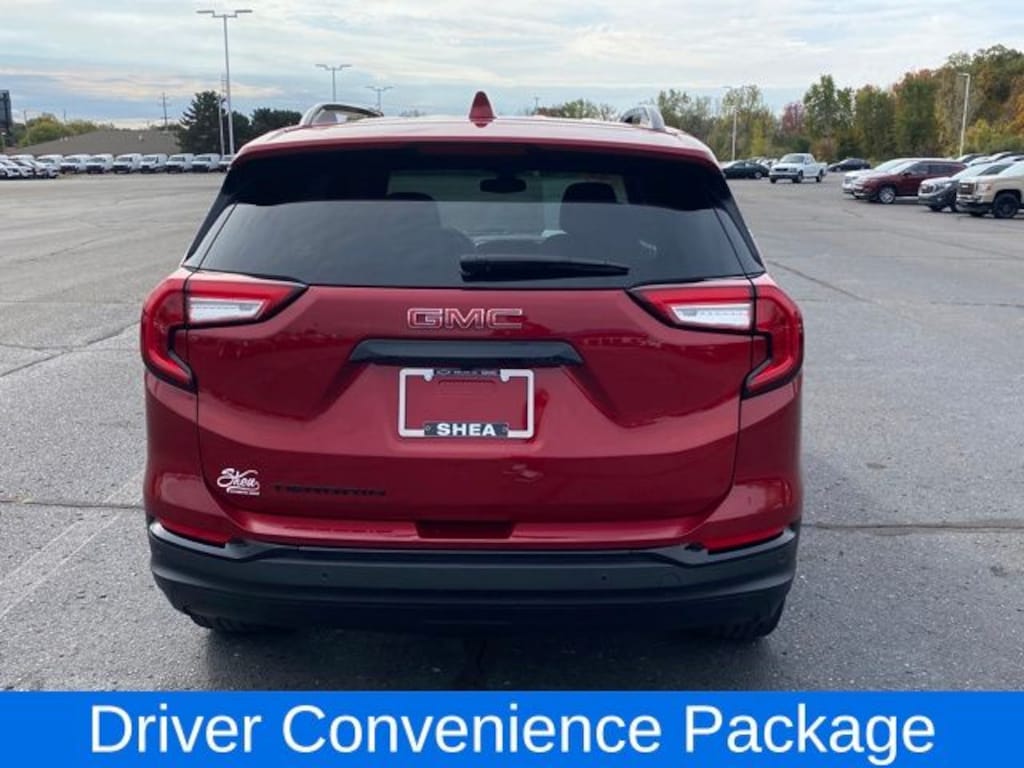 8-Way Power Driver Seat Adjuster, Adaptive Cruise Control, Black GMC Center Caps w/Red GMC Lettering, Black Mirror Caps, Darkened Front Grille, Driver & Front Passenger Heated Seats, Driver Convenience Package, Dual-Zone Automatic Climate Control, Elevation Edition, Outside Heated Power-Adjustable Mirrors, Rear Park Assist, Remote Start, Roof-Mounted Luggage Rack Side Rails, Safety Alert Seat, Terrain Pro Safety Plus, Wheels: 19" Gloss Black Aluminum, 2 USB Data Ports w/Auxiliary Input Jack, 3.47 Axle Ratio, 4-Way Manual Driver's Seat, 4-Way Manual Front Passenger Seat, 4-Wheel Disc Brakes, 4.2" Multi-Color Driver Information Screen, 6 Speakers, 6-Speaker Audio System Feature, ABS brakes, Air Conditioning, Alloy wheels, AM/FM radio: SiriusXM, Auto High-beam Headlights, Auto-dimming Rear-View mirror, Automatic temperature control, Bluetooth® For Phone, Brake assist, Bumpers: body-color, Cold Air Grille Shutter, Compass, Delay-off headlights, Driver door bin, Driver vanity mirror, Dual front impact airbags, Dual front side impact airbags, Electronic Stability Control, Emergency communication system: OnStar and GMC connected services capable, Floor Liner Package (LPO), Four wheel independent suspension, Front & Rear All-Weather Floor Liners (LPO), Front anti-roll bar, Front Bucket Seats, Front Center Armrest, Front reading lights, Fully automatic headlights, Heated door mirrors, Illuminated entry, Integrated Cargo Liner (LPO), Low tire pressure warning, Occupant sensing airbag, Outside temperature display, Overhead airbag, Overhead console, Panic alarm, Passenger door bin, Passenger vanity mirror, Power door mirrors, Power Driver Lumbar Control, Power Programmable Rear Liftgate, Power steering, Power windows, Preferred Equipment Group 3SA, Premium Cloth Seat Trim, Radio data system, Radio: GMC Infotainment Audio System w/7" Display, Rear anti-roll bar, Rear seat center armrest, Rear window defroster, Rear window wiper, Remote keyless entry, Security system, SiriusXM Radio, Speed control, Speed-sensing steering, Split folding rear seat, Spoiler, Steering wheel mounted audio controls, Tachometer, Telescoping steering wheel, Tilt steering wheel, Traction control, Trip computer, Variably intermittent wipers, Wheel Locks, Wheels: 17" x 7" Silver Painted Aluminum, Wireless Apple CarPlay/Wireless Android Auto, 8-Way Power Driver Seat Adjuster, Adaptive Cruise Control, Black GMC Center Caps w/Red GMC Lettering, Black Mirror Caps, Darkened Front Grille, Driver & Front Passenger Heated Seats, Driver Convenience Package, Dual-Zone Automatic Climate Control, Elevation Edition, Outside Heated Power-Adjustable Mirrors, Rear Park Assist, Remote Start, Roof-Mounted Luggage Rack Side Rails, Safety Alert Seat, Terrain Pro Safety Plus, Wheels: 19" Gloss Black Aluminum.