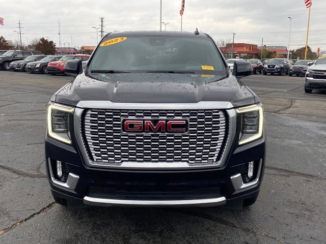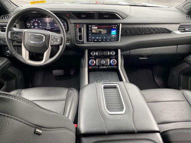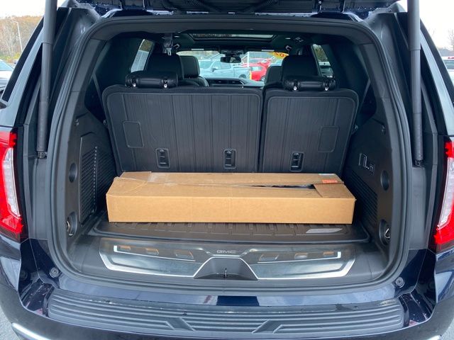 14 Speakers, 15" Diagonal Multi-Color Head-Up Display, 2 Presets For Outside Rearview Mirrors, 3 Years of GMC Connected Services, 3 Years of OnStar Safety & Security, 3 Years of OnStar Safety & Security (DISC), 3.23 Rear Axle Ratio, 3rd Row 60/40 Power-Folding Split-Bench Seat, 3rd row seats: split-bench, 4-Wheel Disc Brakes, ABS brakes, Adaptive Cruise Control, Adaptive suspension, Air Conditioning, All-Weather Cargo Mat (LPO), Alloy wheels, AM/FM radio: SiriusXM with 360L, AM/FM Stereo, Apple CarPlay/Android Auto, Auto High-beam Headlights, Auto-dimming door mirrors, Auto-dimming Rear-View mirror, Auto-leveling suspension, Automatic Emergency Braking, Automatic temperature control, Bodyside moldings, Bose 14-Speaker Surround w/CenterPoint, Brake assist, Bright Front & Rear Door Sill Plates, Bumpers: body-color, Chrome Door Handles w/Body-Color Strip, Compass, Delay-off headlights, Driver door bin, Driver vanity mirror, Dual Exhaust System, Dual front impact airbags, Dual front side impact airbags, Dual-Pane Panoramic Power Sunroof, Electronic Stability Control, Emergency communication system: OnStar and GMC connected services capable, Enhanced Automatic Emergency Braking, Floor Console, Following Distance Indicator, Forward Collision Alert, Four wheel independent suspension, Front & Rear Park Assist, Front anti-roll bar, Front Bucket Seats, Front Center Armrest, Front dual zone A/C, Front fog lights, Front Pedestrian Braking, Front reading lights, Fully automatic headlights, Galvano Bodyside Moldings, Garage door transmitter, Hands-Free Power Programmable Rear Liftgate, HD Surround Vision, Heads-Up Display, Heated & Ventilated Driver & Front Passenger Seats, Heated 2nd Row Outboard Position Seats, Heated door mirrors, Heated Driver & Front Passenger Seats, Heated front seats, Heated rear seats, Heated Steering Wheel, Heated steering wheel, Hill Descent Control, Illuminated entry, Illuminated Front Door Sill Plates (LPO), Illuminated Liftgate Sill Plate (LPO), Illuminated Mirror GMC Emblem (LPO), Inside Rear-View Auto-Dimming Mirror, IntelliBeam Automatic High Beam On/Off, Lane Change Alert w/Side Blind Zone Alert, Lane Keep Assist w/Lane Departure Warning, Low tire pressure warning, Magnetic Ride Control Suspension, Memory seat, Navigation System, Not Equipped w/4-Way Driver & Fr Pass Pwr Lumbar, Occupant sensing airbag, Outside Heated Power-Adjustable Mirrors, Outside temperature display, Overhead airbag, Overhead console, Panic alarm, Passenger door bin, Passenger vanity mirror, Perforated Leather Seating Surfaces, Power door mirrors, Power driver seat, Power Liftgate, Power passenger seat, Power Release 2nd Row Bucket Seats, Power steering, Power Tilt & Telescopic Steering Column, Power windows, Preferred Equipment Group 5SA, Rain sensing wipers, Rear air conditioning, Rear anti-roll bar, Rear Cross Traffic Alert, Rear Pedestrian Alert, Rear reading lights, Rear window defroster, Rear window wiper, Remote keyless entry, Roof rack: rails only, Safety Alert Seat, Security system, SiriusXM w/360L, Speed control, Speed-sensing steering, Split folding rear seat, Spoiler, Steering wheel memory, Steering wheel mounted audio controls, Tachometer, Telescoping steering wheel, Tilt steering wheel, Traction contro