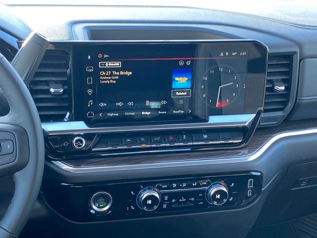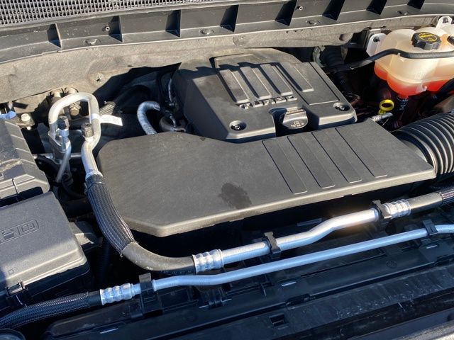 Navigation System, 10-Way Power Driver Seat Adjuster w/Lumbar, 120-Volt Bed Mounted Power Outlet, 120-Volt Interior Power Outlet, 2 Charge/Data USB Ports, 2 Type-C Charge-Only Rear USB Ports, 220 Amp Alternator, 3.42 Rear Axle Ratio, 4-Way Manual Passenger Seat Adjuster, 4-Wheel Disc Brakes, 6 Speakers, 6-Speaker Audio System Feature, ABS brakes, Air Conditioning, Alloy wheels, AM/FM radio: SiriusXM with 360L, Apple CarPlay/Android Auto, Auto High-beam Headlights, Auto-Locking Rear Differential, Automatic Emergency Braking, Automatic temperature control, Body Color Header w/Gloss Black Mesh Grille Bars, Brake assist, Buckle to Drive, Bumpers: body-color, Cloth Seat Trim, Color-Keyed Carpeting Floor Covering, Compass, Deep-Tinted Glass, Delay-off headlights, Driver door bin, Driver vanity mirror, Dual front impact airbags, Dual front side impact airbags, Electric Rear-Window Defogger, Electronic Stability Control, Following Distance Indicator, Forward Collision Alert, Front 40/20/40 Split-Bench Seat, Front anti-roll bar, Front Center Armrest w/Storage, Front dual zone A/C, Front fog lights, Front Frame-Mounted Black Recovery Hooks, Front Pedestrian Braking, Front reading lights, Front Rubberized-Vinyl Floor Mats, Front wheel independent suspension, Fully automatic headlights, Genuine wood dashboard insert, GMC Connected Access Capable, HD Rear Vision Camera, Heated door mirrors, Heated Driver & Front Outboard Passenger Seating, Heated front seats, Heated steering wheel, High Capacity Suspension Package, Hitch Guidance, Illuminated entry, IntelliBeam Automatic High Beam On/Off, Keyless Open & Start, Lane Keep Assist w/Lane Departure Warning, LED Cargo Area Lighting, Low tire pressure warning, Manual Tilt-Wheel & Telescoping Steering Column, Occupant sensing airbag, OnStar & GMC Connected Services Capable, Outside temperature display, Overhead airbag, Overhead console, Panic alarm, Passenger door bin, Passenger vanity mirror, Power Door Locks, Power door mirrors, Power driver seat, Power Front Windows w/Driver Express Up/Down, Power Front Windows w/Passenger Express Down, Power Rear Windows w/Express Down, Power steering, Power windows, Preferred Equipment Group 3VL, Premium audio system: GMC Infotainment System, Push Button Start, Radio data system, Radio: Premium GMC Infotainment Audio System, Rear reading lights, Rear Rubberized-Vinyl Floor Mats, Rear step bumper, Rear window defroster, Remote keyless entry, Remote Vehicle Starter System, Security system, SiriusXM w/360L, Speed control, Speed-sensing steering, Split folding rear seat, Standard Tailgate, Steering Wheel Audio Controls, Steering wheel mounted audio controls, Tachometer, Telescoping steering wheel, Theft Deterrent System (Unauthorized Entry), Tilt steering wheel, Traction control, Trailering Package, Trip computer, Variably intermittent wipers, Voltmeter, Wheels: 20" x 9" High Gloss Black Painted Aluminum, Wi-Fi Hotspot Capable, Wireless Apple CarPlay/Wireless Android Auto, Navigation System.