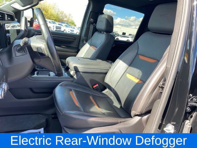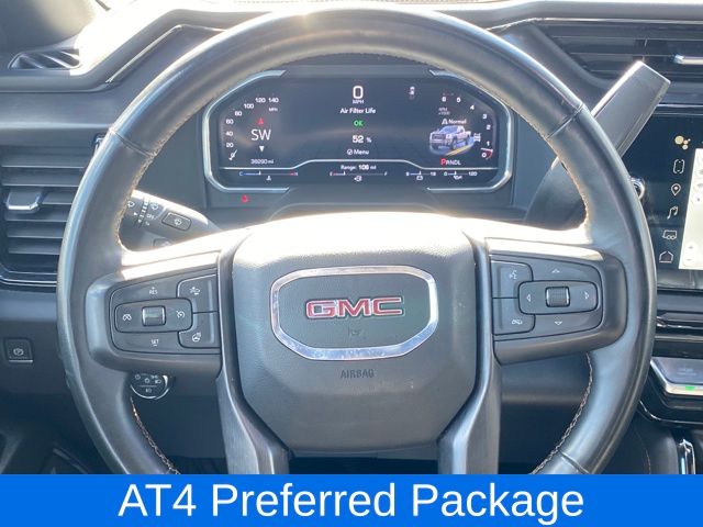 120-Volt Bed Mounted Power Outlet, 120-Volt Instrument Panel Power Outlet, 2 Charge-Only Rear USB Ports, 2 Charge/Data USB Ports Inside Center Console, 2 USB Ports, 2-Speed Active Transfer Case, 220-Amp Alternator, Adaptive Cruise Control, AT4 Preferred Package, AT4 Premium Plus Package, Bed View Camera w/2 Trailer Camera Provisions, Bose Premium 7-Speaker Sound System, Deep-Tinted Glass, Electric Rear-Window Defogger, Floor-Mounted Center Console, Front Prem Floor Liners w/Removable Carpet Insert, Front Rain-Sensing Wipers, Gloss Black Header Grille & Grille Insert Bars, GMC Connected Access Capable, Gooseneck/5th Wheel Prep Package, HD Surround Vision, Heated 2nd Row Outboard Seats, Heated Driver & Front Outboard Passenger Seats, Hill Descent Control, Integrated Trailer Brake Controller, Keyless Open & Start, LED Cargo Area Lighting, LED Smoked Amber Roof Marker Lamps, Manual Tilt-Wheel/Telescoping Steering Column, Off-Road High Clearance Step (LPO), OnStar & GMC Connected Services Capable, Power Front Passenger Windows w/Express Up/Down, Power Sliding Rear Window w/Defogger, Power Sunroof, Preferred Equipment Group 4SB, Push Button Start, Rear Cross Traffic Alert, Rear Prem Floor Liners w/Removable Carpet Insert, Rear Wheelhouse Liners, Remote Vehicle Starter System, Safety Alert Seat, SiriusXM w/360L, Snow Plow Prep/Camper Package, Spray-On Bedliner w/AT4 Logo, Steering Wheel Audio Controls, Technology Package, Trailer Cam Provisions & Trailer Viewing Software, Trailer Side Blind Zone Alert, Ultrasonic Front & Rear Park Assist, Unauthorized Entry Theft-Deterrent System, Universal Home Remote, Ventilated Driver & Front Passenger Seats, Wireless Charging, Wireless Phone Projection, X31 Off-Road Package, 10-Way Power Driver Seat Adjuster w/Lumbar, 10-Way Power Passenger Seat Adjuster w/Lumbar, 1st & 2nd Rows All-Weather Floor Liners (LPO), 3.73 Rear Axle Ratio, 4-Wheel Disc Brakes, 7 Speakers, ABS brakes, Air Conditioning, Alloy wheels, AM/FM radio: SiriusXM with 360L, Apple CarPlay/Android Auto, Auto High-beam Headlights, Auto-dimming door mirrors, Auto-dimming Rear-View mirror, Automatic Emergency Braking, Automatic temperature control, Brake assist, Buckle to Drive, Bumpers: body-color, Compass, Delay-off headlights, Driver door bin, Driver Memory, Driver vanity mirror, Dual front impact airbags, Dual front side impact airbags, Electronic Stability Control, Following Distance Indicator, Forward Collision Alert, Front anti-roll bar, Front Bucket Seats, Front Center Armrest, Front dual zone A/C, Front fog lights, Front Pedestrian Braking, Front reading lights, Front wheel independent suspension, Fully automatic headlights, Heated door mirrors, Heated front seats, Heated rear seats, Heated steering wheel, Heavy-Duty 80 Amp Battery, Hitch Guidance w/Hitch View, Illuminated entry, In-Vehicle Trailering System App, Inside Rearview Auto-Dimming Rear Camera Mirror, IntelliBeam Automatic High Beam On/Off, Lane Departure Warning System, Low tire pressure warning, Memory seat, Multicolor 15" Diagonal Head-Up Display, Occupant sensing airbag, Off-Road Suspension, Outside temperature display, Overhead airbag, Overhead console, Panic alarm, Passenger door bin, Passenger vanity