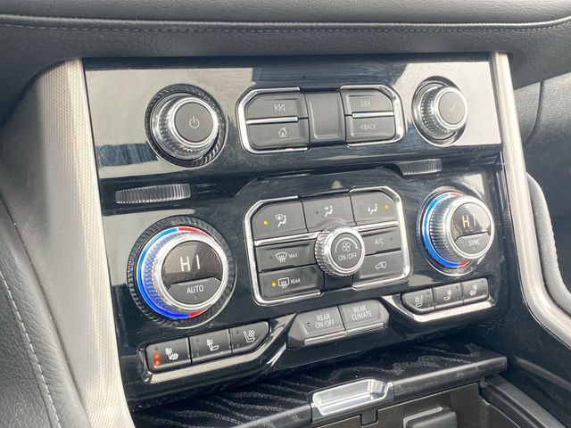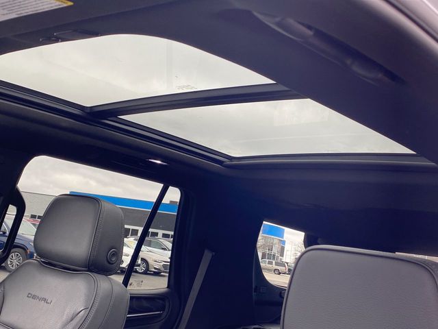 Step inside the Yukon Denali and be greeted by a cabin that exudes luxury and sophistication. Plush, perforated leather seating surfaces, heated and ventilated front seats, and a panoramic sunroof create an unparalleled sense of comfort and refinement. The Bose 14-speaker surround sound system and the intuitive infotainment system with Apple CarPlay and Android Auto integration ensure that you and your passengers are entertained and connected throughout your journey.