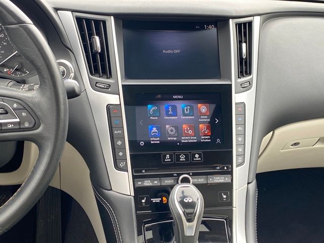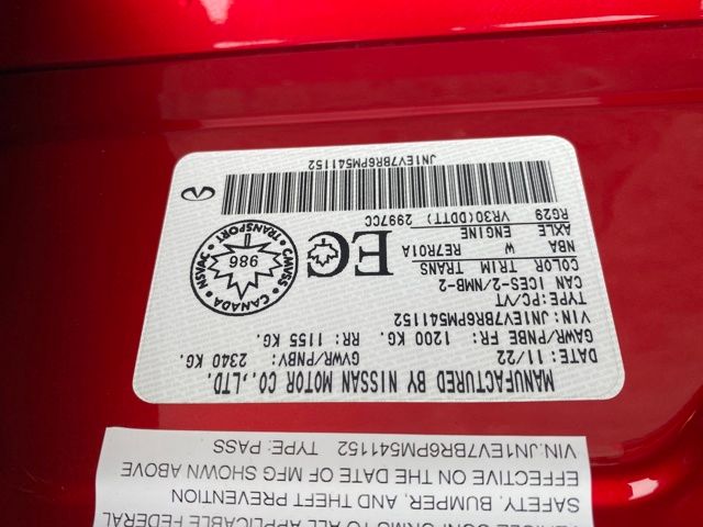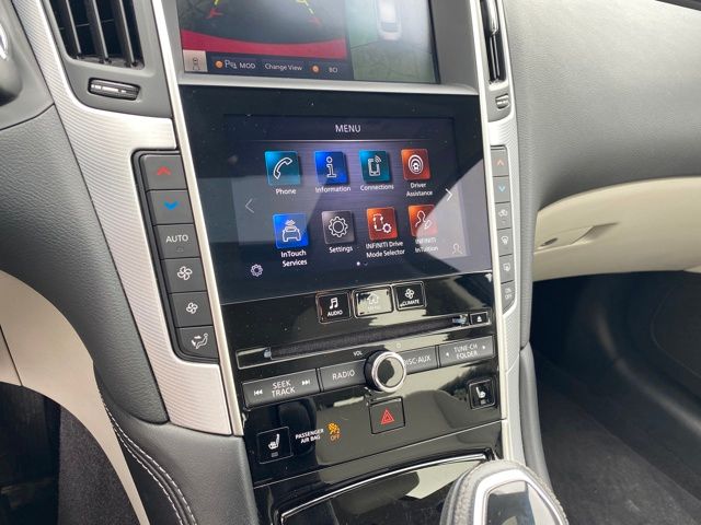 16 Speakers, 18" x 7.5" Aluminum Alloy Wheels, 4-Wheel Disc Brakes, ABS brakes, Air Conditioning, Alloy wheels, AM/FM radio: SiriusXM, Auto High-beam Headlights, Auto tilt-away steering wheel, Auto-dimming Rear-View mirror, Automatic temperature control, Blind Spot Warning, Brake assist, Bumpers: body-color, CD player, Compass, Delay-off headlights, Driver door bin, Driver vanity mirror, Dual front impact airbags, Dual front side impact airbags, Electronic Stability Control, Emergency communication system: INFINITI Connection, Four wheel independent suspension, Front anti-roll bar, Front Bucket Seats, Front Center Armrest, Front dual zone A/C, Front fog lights, Front reading lights, Fully automatic headlights, Garage door transmitter: HomeLink, Heated door mirrors, Heated Front Bucket Seats, Heated front seats, Heated steering wheel, Illuminated entry, Leather Shift Knob, Leather steering wheel, Leather-Appointed Seating Surfaces, Low tire pressure warning, Memory seat, Occupant sensing airbag, Outside temperature display, Overhead airbag, Overhead console, Panic alarm, Passenger door bin, Passenger vanity mirror, Power door mirrors, Power driver seat, Power moonroof, Power passenger seat, Power steering, Power windows, Radio data system, Radio: INFINITI InTouch Dual HD Display System, Rain sensing wipers, Rear anti-roll bar, Rear reading lights, Rear seat center armrest, Rear window defroster, Remote keyless entry, Security system, Speed control, Speed-Sensitive Wipers, Split folding rear seat, Steering wheel memory, Steering wheel mounted audio controls, Tachometer, Telescoping steering wheel, Tilt steering wheel, Traction control, Trip computer, Turn signal indicator mirrors, Variably intermittent wipers.