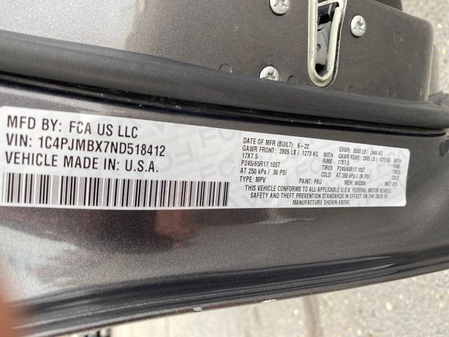 7 & 4 Pin Wiring Harness, Class III Receiver Hitch, Trailer Tow Group, Trailer Tow Wiring Harness, 3.517 Final Drive Ratio, 4-Wheel Disc Brakes, 4G LTE Wi-Fi Hot Spot, 6 Speakers, 8.4" Touchscreen Display, ABS brakes, Air Conditioning, Alloy wheels, AM/FM radio: SiriusXM, Anti-whiplash front head restraints, Apple CarPlay, Apple CarPlay/Android Auto, Auto-Dimming Rear-View Mirror, Automatic temperature control, Brake assist, Cloth/Premium Vinyl Bucket Seats, Comfort/Convenience Group, Compass, Delay-off headlights, Driver door bin, Driver vanity mirror, Dual front impact airbags, Dual front side impact airbags, Electronic Stability Control, For Details, Visit DriveUconnect.com, For More Info, Call 800-643-2112, Four wheel independent suspension, Front anti-roll bar, Front Bucket Seats, Front Center Armrest, Front dual zone A/C, Front fog lights, Front reading lights, Fully automatic headlights, Google Android Auto, GPS Antenna Input, Hands-Free Power Liftgate, Heated door mirrors, Heated front seats, Heated steering wheel, Illuminated entry, K-Black Door Trim Panel Appliques, K-Black Interior Accents, Knee airbag, Leather Shift Knob, Low tire pressure warning, Occupant sensing airbag, Off Road Suspension, Outside temperature display, Overhead airbag, Overhead console, Panic alarm, ParkView Rear Back-Up Camera, Passenger door bin, Passenger vanity mirror, Power door mirrors, Power driver seat, Power steering, Power windows, Quick Order Package 27E, Radio data system, Radio: Uconnect 4 w/8.4" Display, Rain sensing wipers, Rear anti-roll bar, Rear reading lights, Rear seat center armrest, Rear side impact airbag, Rear window defroster, Rear window wiper, Remote keyless entry, Roof rack: rails only, Security Alarm, SiriusXM Radio Service, SiriusXM Satellite Radio, Speed control, Speed-sensing steering, Split folding rear seat, Spoiler, Steering wheel mounted audio controls, Tachometer, Telescoping steering wheel, Tilt steering wheel, Traction control, Trip computer, Turn signal indicator mirrors, Universal Garage Door Opener, USB Host Flip, Variably intermittent wipers, Voltmeter, Wheels: 17" x 7.5" Black Painted Aluminum, Wheels: 17" x 7.5" Painted Diamond Cut Aluminum, 7 & 4 Pin Wiring Harness, Class III Receiver Hitch, Trailer Tow Group, Trailer Tow Wiring Harness.