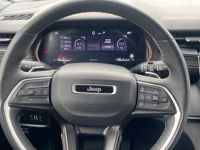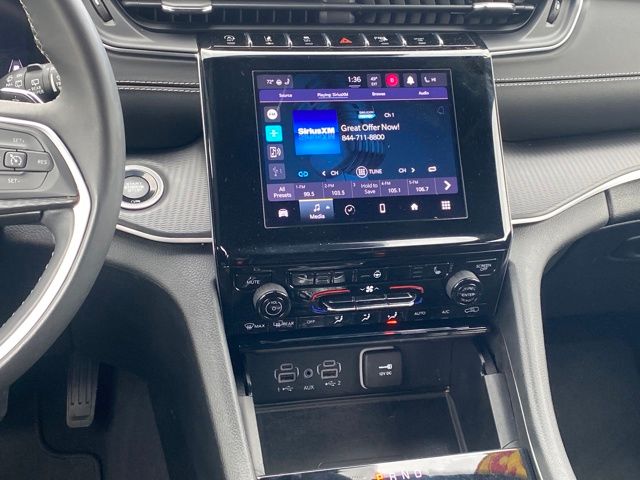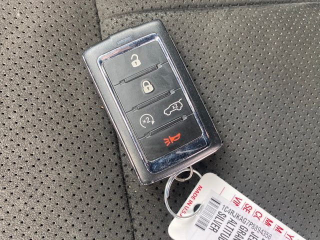 115V Auxiliary Power Outlet, 3.45 Rear Axle Ratio, 3rd Row Charge-Only USB Ports, 3rd row seats: split-bench, 4-Wheel Disc Brakes, 6 Speakers, ABS brakes, Air Conditioning, Alloy wheels, Altitude Appearance Package, Anti-whiplash front head restraints, Automatic temperature control, Black Headliner, Brake assist, Bumpers: body-color, Capri Leatherette/Suede Seats, Cloth Seats, Compass, Delay-off headlights, Delete Laredo Badge, Driver door bin, Driver vanity mirror, Dual front impact airbags, Dual front side impact airbags, Electronic Stability Control, Emergency communication system, Four wheel independent suspension, Front anti-roll bar, Front Bucket Seats, Front Center Armrest w/Storage, Front dual zone A/C, Front License Plate Bracket, Front reading lights, Fully automatic headlights, Gloss Black Exterior Accents, Heated door mirrors, Heated Front Seats, Heated Steering Wheel, Illuminated entry, Knee airbag, Low tire pressure warning, Manual Fold Seatbacks, Molded In Color Black/Gloss Black Roof Rails, Normal Duty Suspension, Occupant sensing airbag, Outside temperature display, Overhead airbag, Overhead console, Panic alarm, ParkView Rear Back-Up Camera, Passenger door bin, Passenger vanity mirror, Power door mirrors, Power driver seat, Power Liftgate, Power steering, Power windows, Quick Order Package 23B Altitude, Radio data system, Radio: Uconnect 5 w/8.4" Display, Rain Sensitive Windshield Wipers, Rear air conditioning, Rear anti-roll bar, Rear reading lights, Rear window defroster, Rear window wiper, Reclining 3rd row seat, Remote keyless entry, Remote Start System, Security system, Selectable Tire Fill Alert, Speed control, Speed-Sensitive Wipers, Split folding rear seat, Spoiler, Steering wheel mounted audio controls, Tachometer, Telescoping steering wheel, Tilt steering wheel, Traction control, Trip computer, Variably intermittent wipers, Voltmeter, Wheels: 18" x 8.0" Fully Painted Aluminum, Wheels: 18" x 8.0" Fully Painted Aluminum 1, Wheels: 20" x 8.5" Gloss Black Painted Aluminum, Wireless Charging Pad.