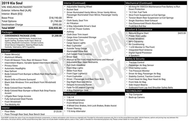 Automatic A/C Temperature Control, Convenience Package, Radio: AM/FM/MP3/SiriusXM Audio System, 16" Alloy Wheels, 4-Wheel Disc Brakes, 6 Speakers, 6-Way Adjustable Driver's Seat, ABS brakes, Air Conditioning, Alloy wheels, AM/FM radio: SiriusXM, Brake assist, Bumpers: body-color, Carpeted Floor Mat, Cloth Seat Trim, Driver door bin, Driver vanity mirror, Dual front impact airbags, Dual front side impact airbags, Electronic Stability Control, Exterior Parking Camera Rear, Front anti-roll bar, Front Bucket Seats, Front Center Armrest, Front reading lights, Front wheel independent suspension, Fully automatic headlights, Illuminated entry, Low tire pressure warning, Occupant sensing airbag, Outside temperature display, Overhead airbag, Overhead console, Panic alarm, Passenger door bin, Passenger vanity mirror, Power door mirrors, Power steering, Power windows, Radio: AM/FM/MP3 Audio System, Rear window defroster, Rear window wiper, Remote keyless entry, Remote Start Kit w/Key Start, Speed control, Speed-sensing steering, Split folding rear seat, Steering wheel mounted audio controls, Tachometer, Telescoping steering wheel, Tilt steering wheel, Traction control, Trip computer, Variably intermittent wipers, Automatic A/C Temperature Control, Convenience Package, Radio: AM/FM/MP3/SiriusXM Audio System.