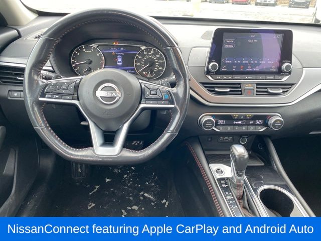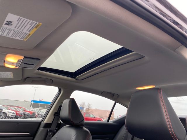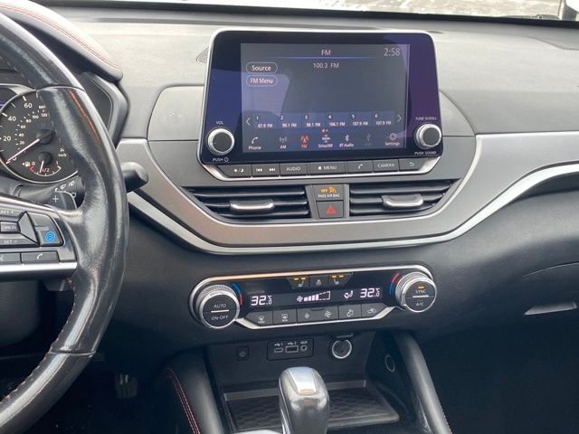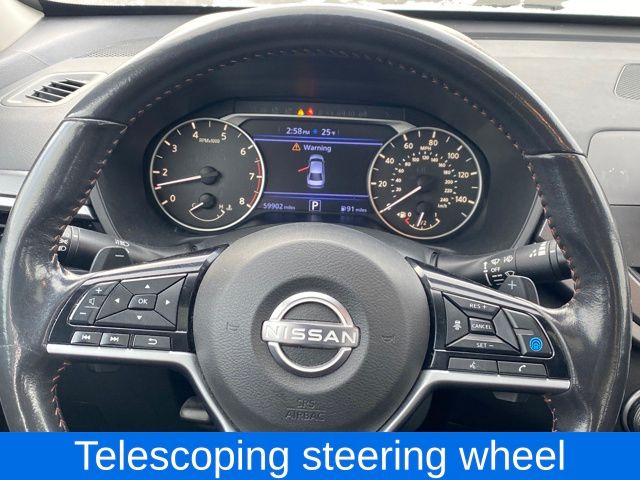 AM/FM radio: SiriusXM, NissanConnect featuring Apple CarPlay and Android Auto, Rear Parking Sensors, Single Panel Moonroof, Speed control, Telescoping steering wheel, 4-Wheel Disc Brakes, 6 Speakers, ABS brakes, Air Conditioning, Alloy wheels, Auto High-beam Headlights, Blind Spot Warning, Brake assist, Bumpers: body-color, Delay-off headlights, Driver door bin, Driver vanity mirror, Dual front impact airbags, Dual front side impact airbags, Electronic Stability Control, Four wheel independent suspension, Front anti-roll bar, Front Bucket Seats, Front Center Armrest, Front reading lights, Front Sport Bucket Seats, Fully automatic headlights, Illuminated entry, Knee airbag, Leather Shift Knob, Low tire pressure warning, Occupant sensing airbag, Outside temperature display, Overhead airbag, Overhead console, Panic alarm, Passenger door bin, Passenger vanity mirror, Power door mirrors, Power driver seat, Power steering, Power windows, Radio data system, Radio: AM/FM Audio System, Rear anti-roll bar, Rear reading lights, Rear seat center armrest, Rear side impact airbag, Rear window defroster, Remote keyless entry, Security system, Speed-sensing steering, Speed-Sensitive Wipers, Split folding rear seat, Sport Seat Trim, Steering wheel mounted audio controls, Tachometer, Tilt steering wheel, Traction control, Trip computer, Variably intermittent wipers, Wheels: 19" Sport Alloy, AM/FM radio: SiriusXM, NissanConnect featuring Apple CarPlay and Android Auto, Rear Parking Sensors, Single Panel Moonroof, Speed control, Telescoping steering wheel.