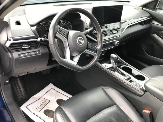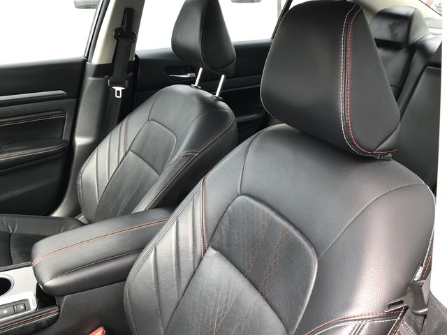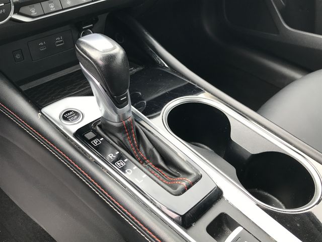 4-Wheel Disc Brakes, 6 Speakers, ABS brakes, Air Conditioning, Alloy wheels, AM/FM radio: SiriusXM, Auto High-beam Headlights, Blind Spot Warning, Brake assist, Bumpers: body-color, Delay-off headlights, Driver door bin, Driver vanity mirror, Dual front impact airbags, Dual front side impact airbags, Electronic Stability Control, Four wheel independent suspension, Front anti-roll bar, Front Bucket Seats, Front Center Armrest, Front reading lights, Front Sport Bucket Seats, Fully automatic headlights, Illuminated entry, Knee airbag, Leather Shift Knob, Low tire pressure warning, NissanConnect featuring Apple CarPlay and Android Auto, Occupant sensing airbag, Outside temperature display, Overhead airbag, Overhead console, Panic alarm, Passenger door bin, Passenger vanity mirror, Power door mirrors, Power driver seat, Power steering, Power windows, Radio data system, Radio: AM/FM Audio System, Rear anti-roll bar, Rear Parking Sensors, Rear reading lights, Rear seat center armrest, Rear side impact airbag, Rear window defroster, Remote keyless entry, Security system, Speed control, Speed-sensing steering, Speed-Sensitive Wipers, Split folding rear seat, Sport Seat Trim, Steering wheel mounted audio controls, Tachometer, Telescoping steering wheel, Tilt steering wheel, Traction control, Trip computer, Variably intermittent wipers, Wheels: 19" Sport Alloy.