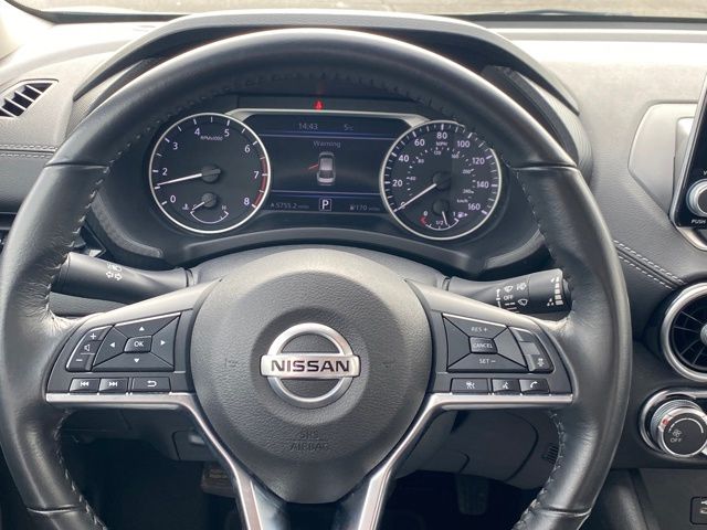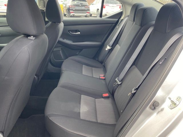 16" Alloy Wheels, 4-Wheel Disc Brakes, 6 Speakers, ABS brakes, Air Conditioning, Alloy wheels, AM/FM radio: SiriusXM, Auto High-beam Headlights, Blind Spot Warning, Brake assist, Bumpers: body-color, Carpeted Floor Mats w/Trunk Mat, Delay-off headlights, Driver door bin, Driver vanity mirror, Dual front impact airbags, Dual front side impact airbags, Electronic Stability Control, Four wheel independent suspension, Front anti-roll bar, Front Bucket Seats, Front Center Armrest, Front reading lights, Fully automatic headlights, Heated door mirrors, Illuminated entry, Knee airbag, Low tire pressure warning, NissanConnect featuring Apple CarPlay and Android Auto, Occupant sensing airbag, Outside temperature display, Overhead airbag, Overhead console, Panic alarm, Passenger door bin, Passenger vanity mirror, Power door mirrors, Power steering, Power windows, Premium Cloth Seat Trim, Radio data system, Radio: AM/FM w/RDS/MP3/Aux-In, Rear anti-roll bar, Rear Parking Sensors, Rear side impact airbag, Rear window defroster, Remote keyless entry, Security system, Speed control, Speed-sensing steering, Split folding rear seat, Steering wheel mounted audio controls, Tachometer, Telescoping steering wheel, Tilt steering wheel, Traction control, Trip computer, Variably intermittent wipers.