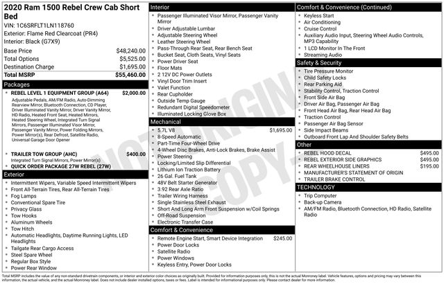 This Rebel is the perfect blend of capability, style, and value. Its rugged design, powerful engine, and impressive list of features make it a must-see for any truck enthusiast. Don't let this opportunity slip away â" come in and take a closer look at this exceptional 2020 Ram 1500 Rebel today.